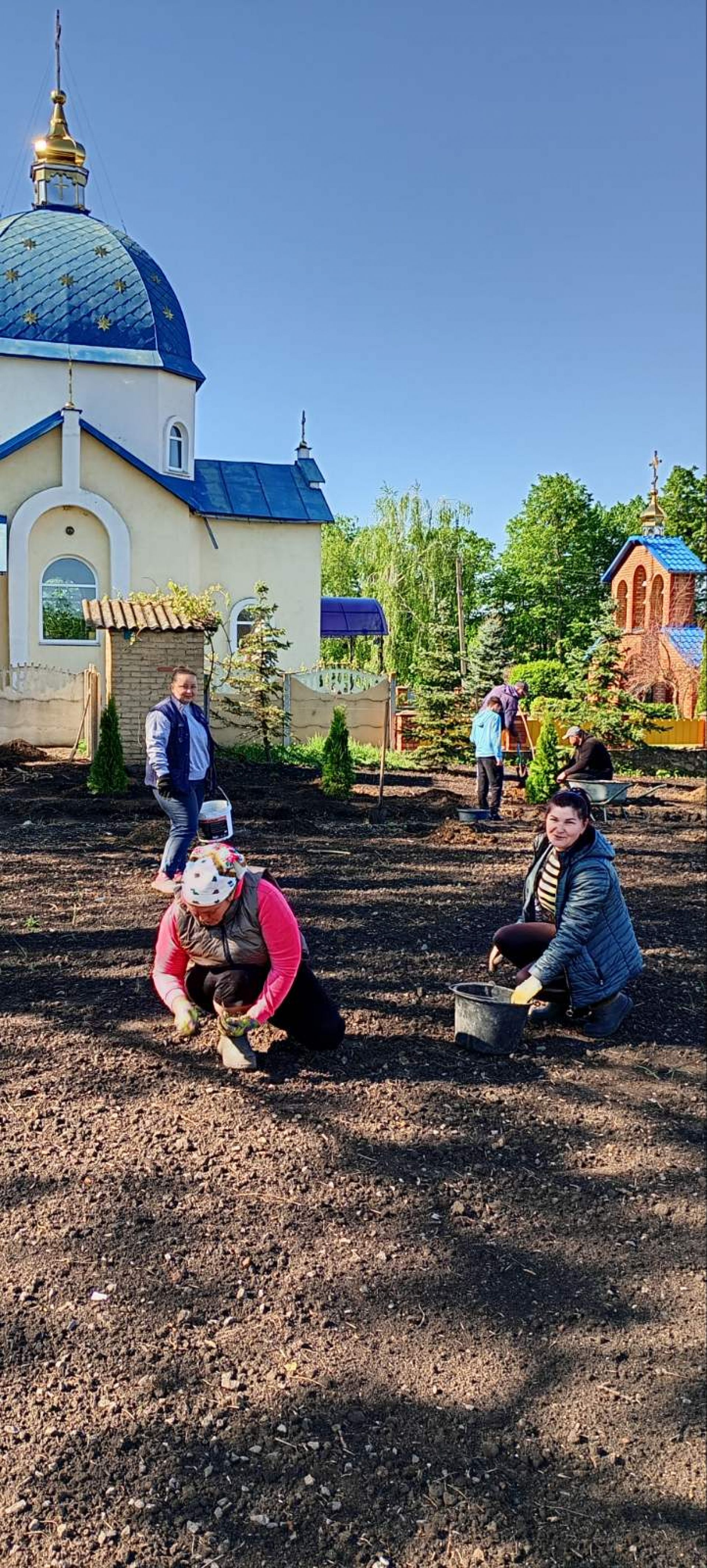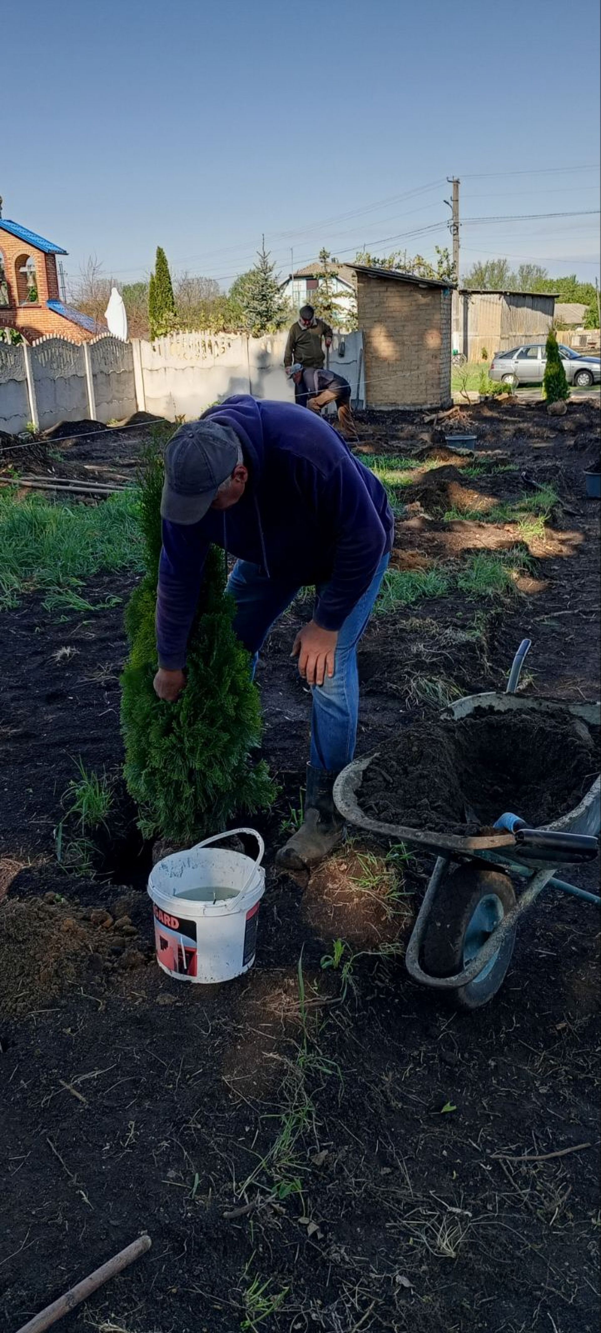 У суботу відбулася толока, до якої долучилася вся родина священника, молодь та інші жителі села. Навіть наймолодший учасник, 6-річний Макарій, допомагав висаджувати дерева.