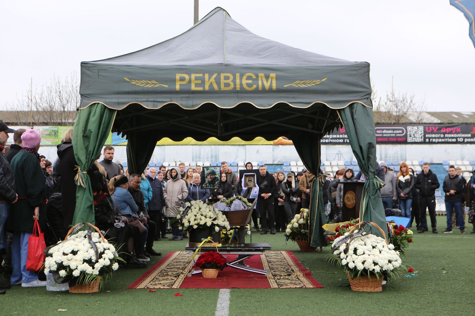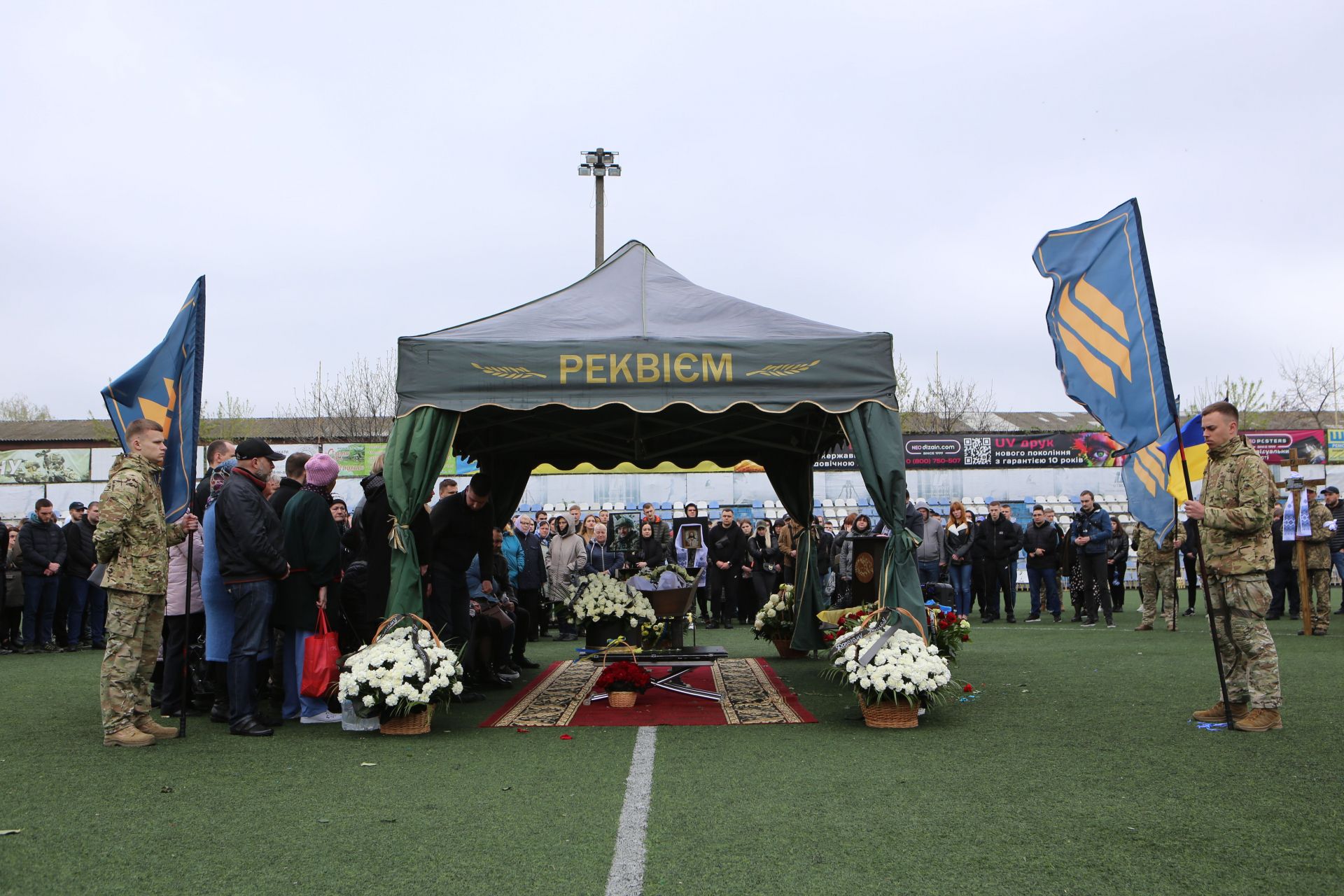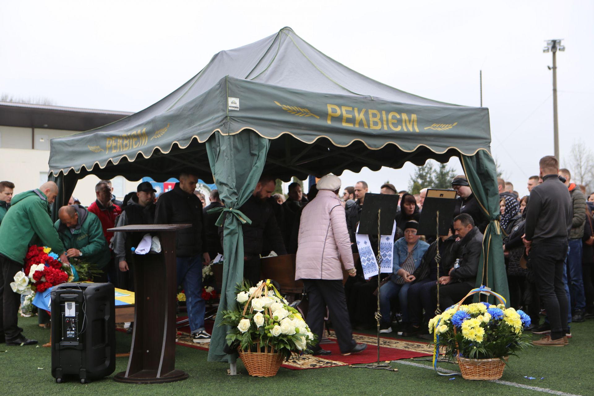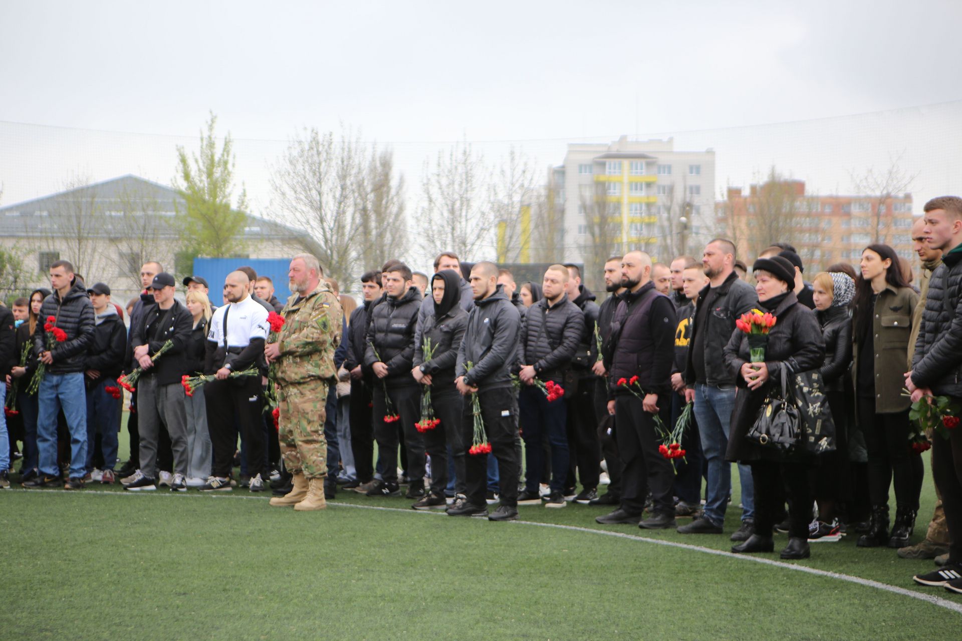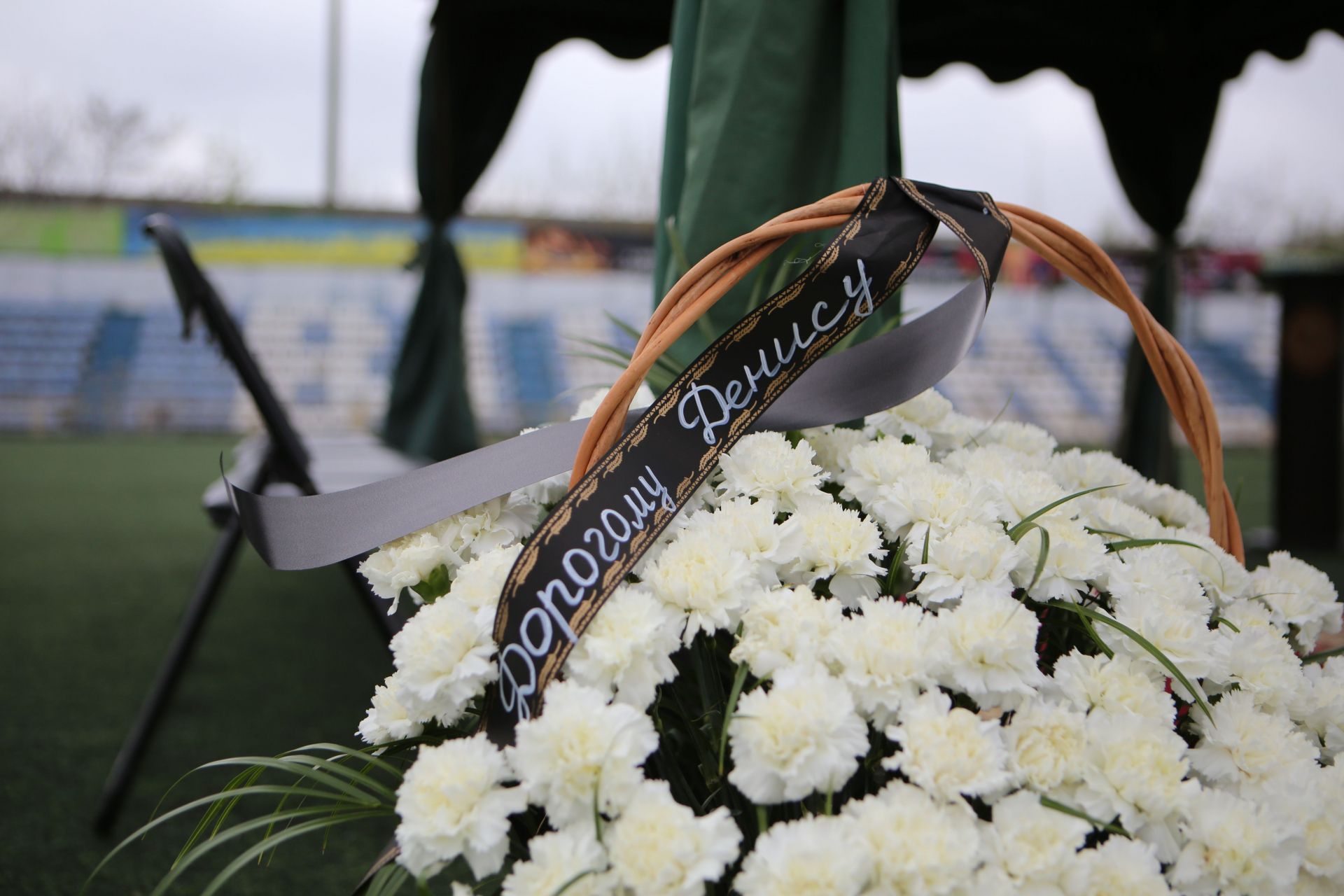 Сьогодні, 26 квітня, Дениса поховали. Прощалися з лідером фанатського руху на полі спортивного комплексу «Нива». Тут також зібралася не одна тисяча людей: рідні, друзі, ультрас, склад команди «Нива», тренерський штаб та адміністрація клубу, прийшли та приїхали десятки Денисових побратимів. Було й чимало інших людей, які хотіли провести Героя в останню путь.