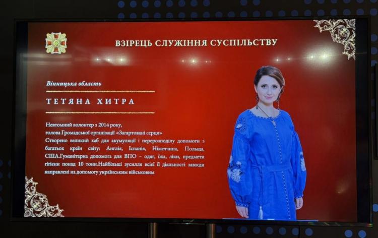 - Тетяна Хитра — «Взірець служіння суспільству», голова ГО «Загартовані серця» та волонтерка з 2014 року.