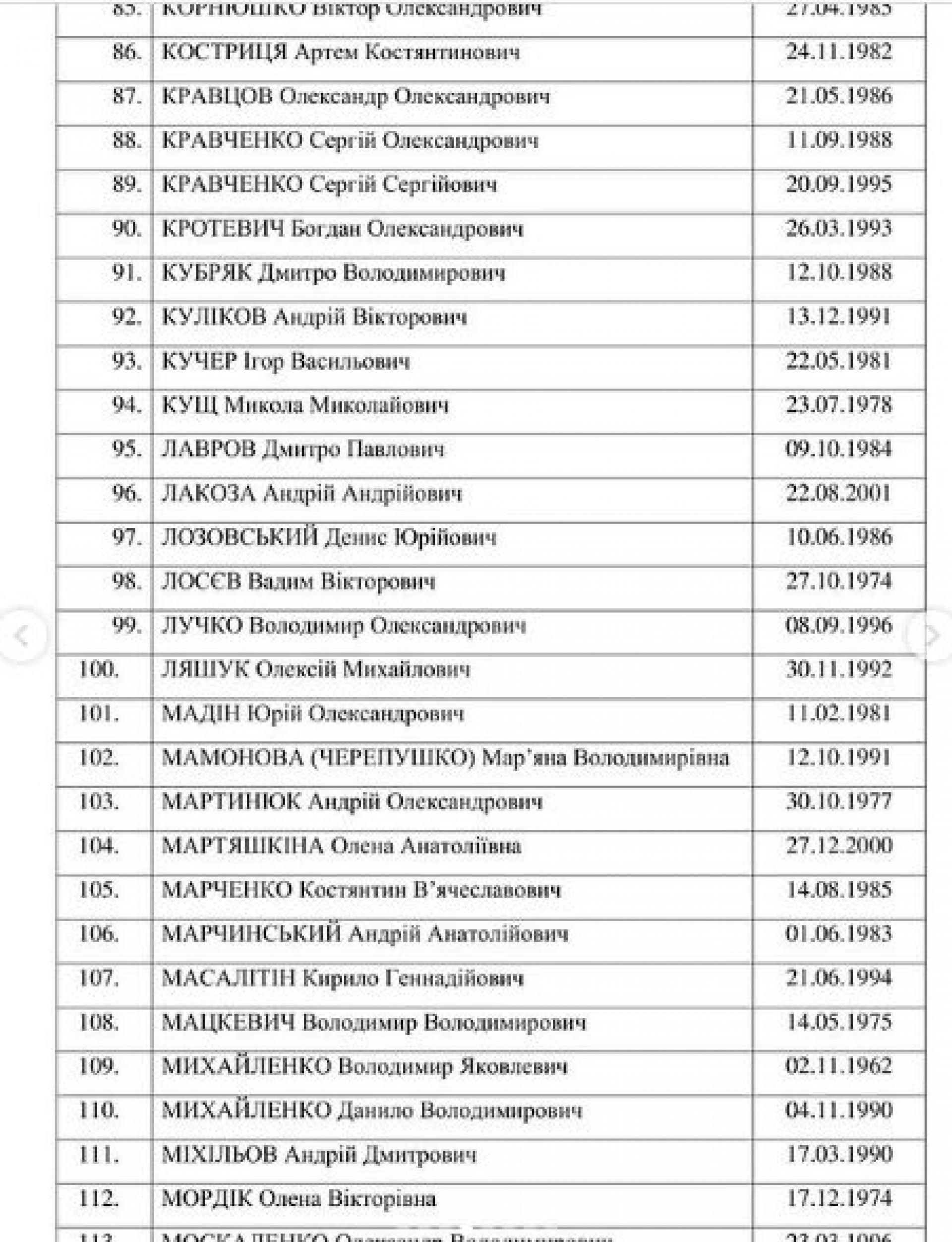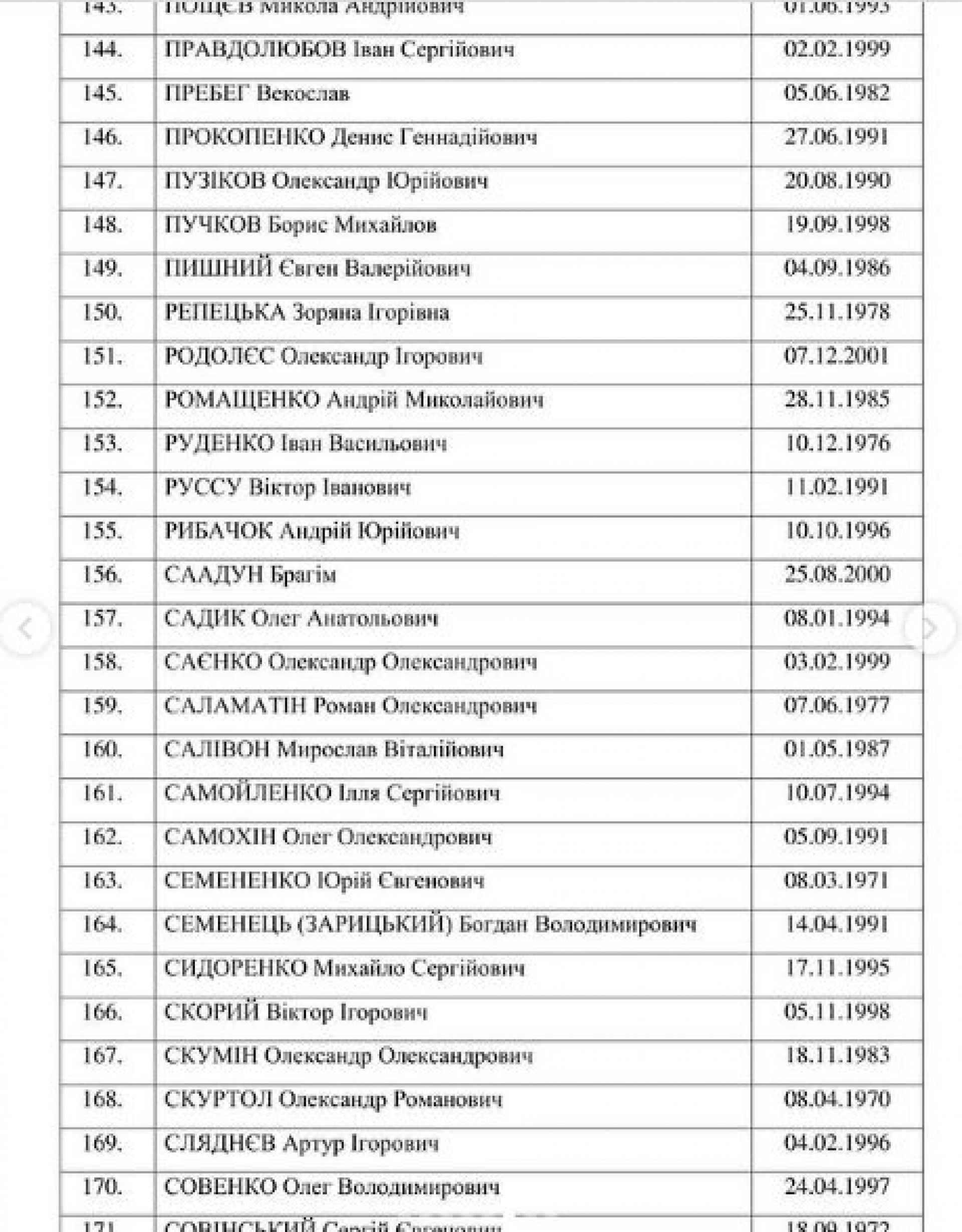 Список усіх звільнених з полону бійців: