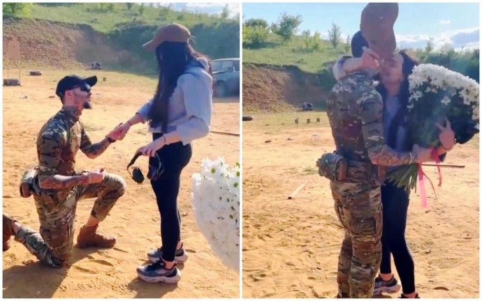 «На одному і з приватних тирів Олександр спочатку підірвав імітаційну гранату та подарував кільце від гранати, а потім дістав справжню каблучку й освідчився коханій дівчині. Зрозуміло, що вона сказала «Так». Вітаємо наречених з важливим кроком у житті! І чекаємо на весілля після перемоги у Криму», — йдеться в дописі.