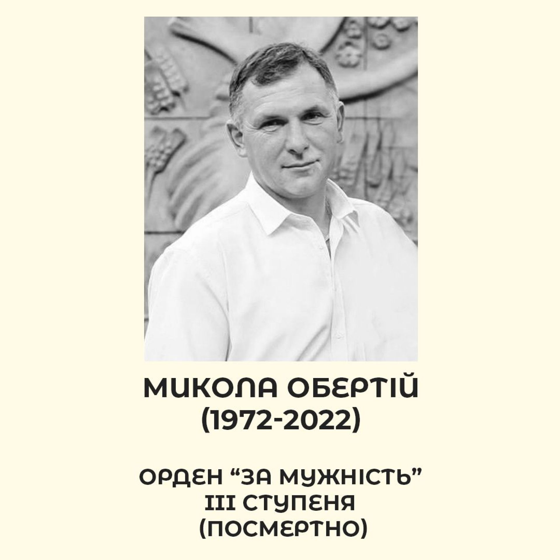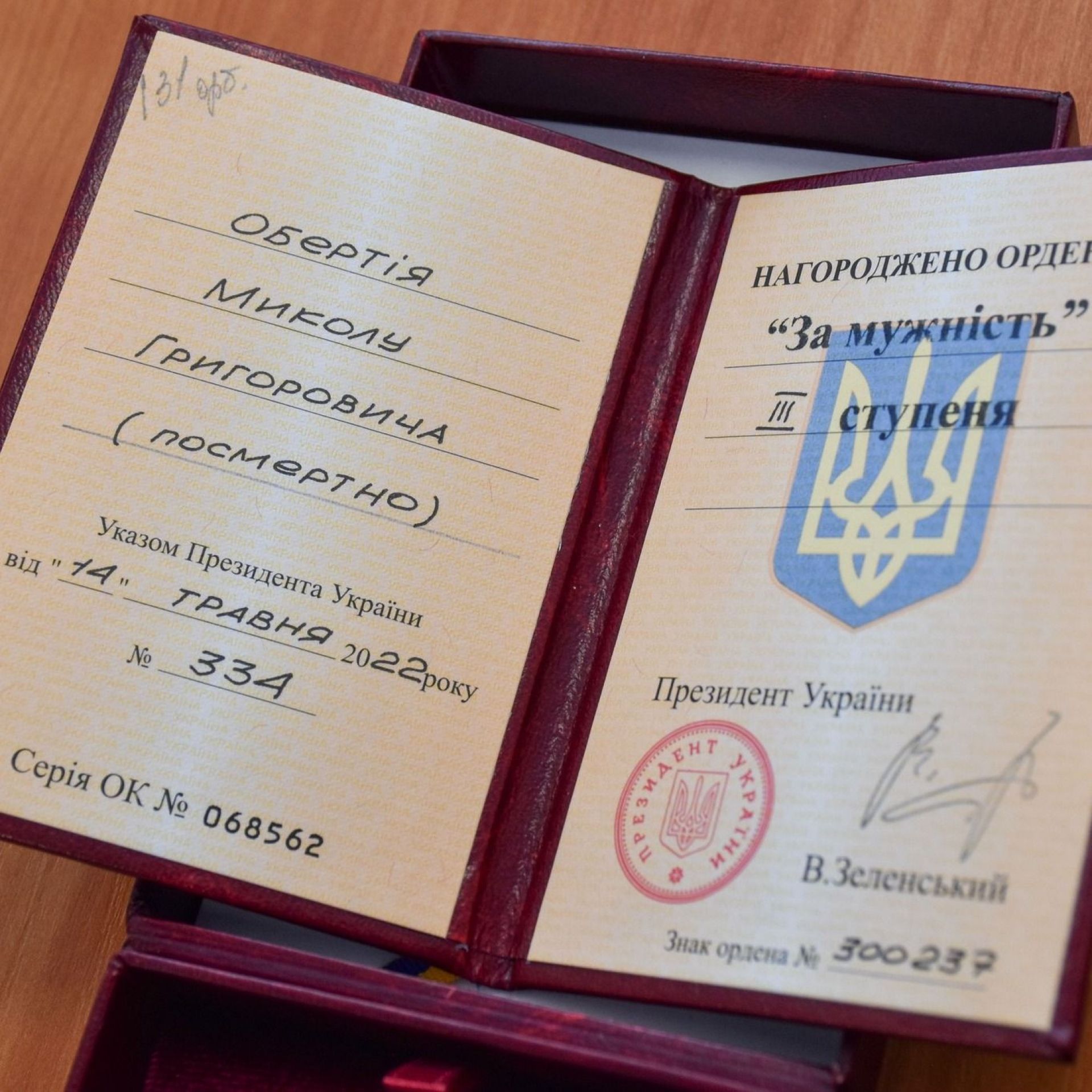 - Президент відзначив посмертно нашого земляка, який загинув, боронячи країну. Орден «За мужність» третього ступеня передали рідним Миколи Обертія.