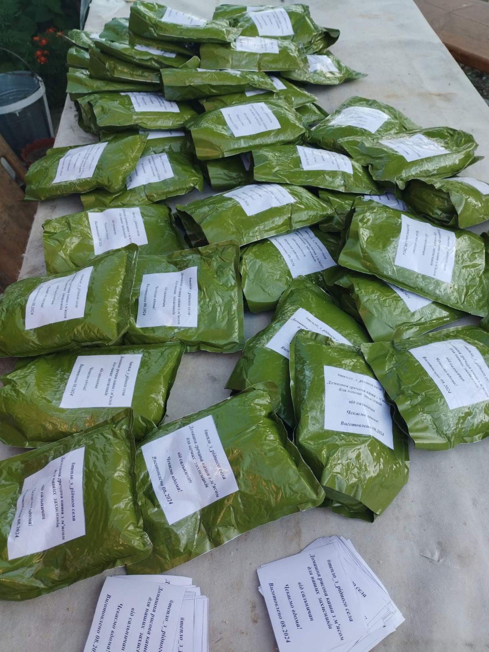 Але Леся не зупинилася на досягнутому. Шукаючи нові способи допомоги, ви дізналися про технологію приготування їжі в реторт-пакетах. Зважаючи на досвід досвіду, жінка звернулася за порадою до досвідчених волонтерів. Вони не тільки поділилися рецептами, а й Юрій Огородник з Житомирщини передав їй необхідне обладнання — запайщик.