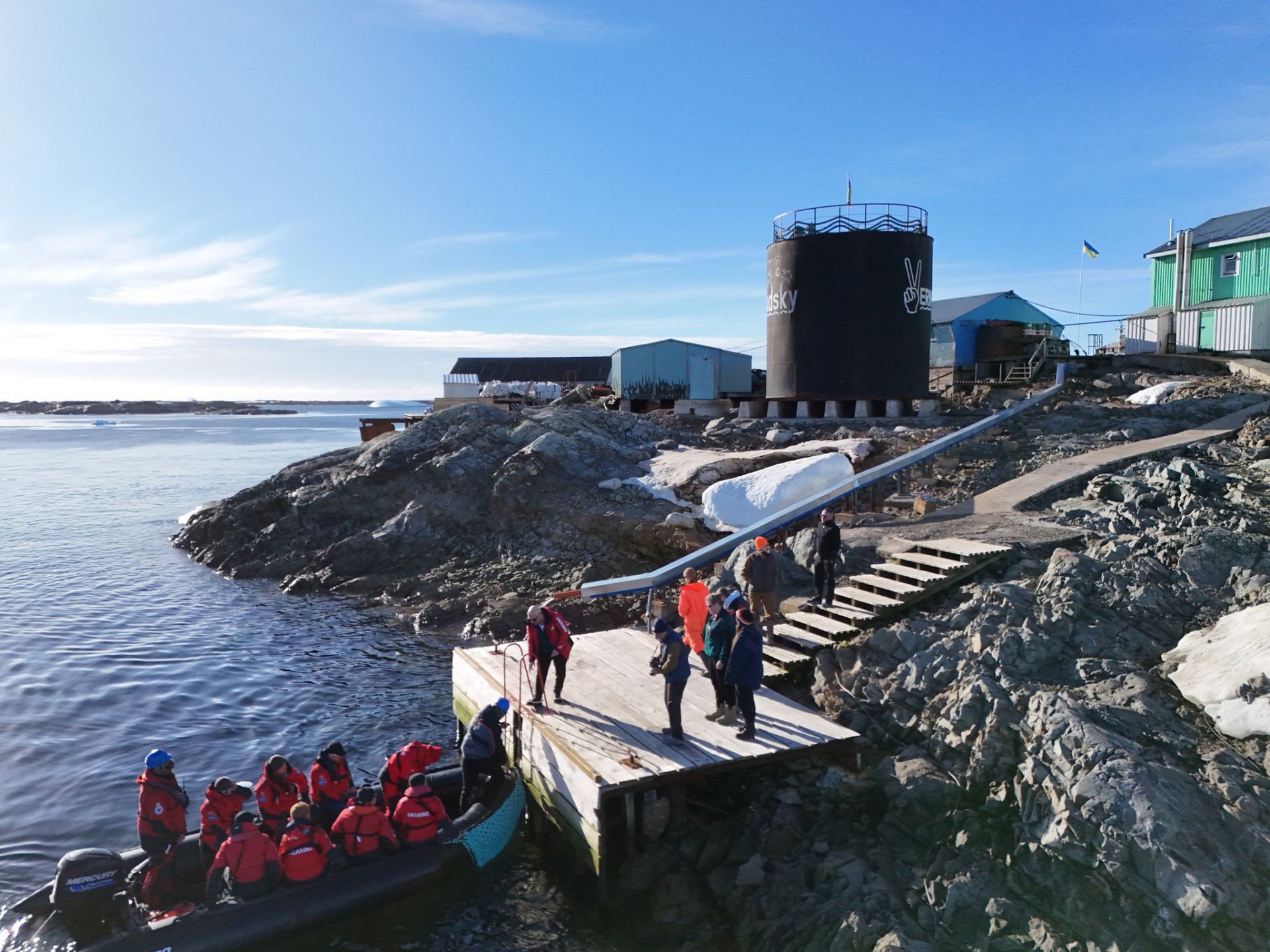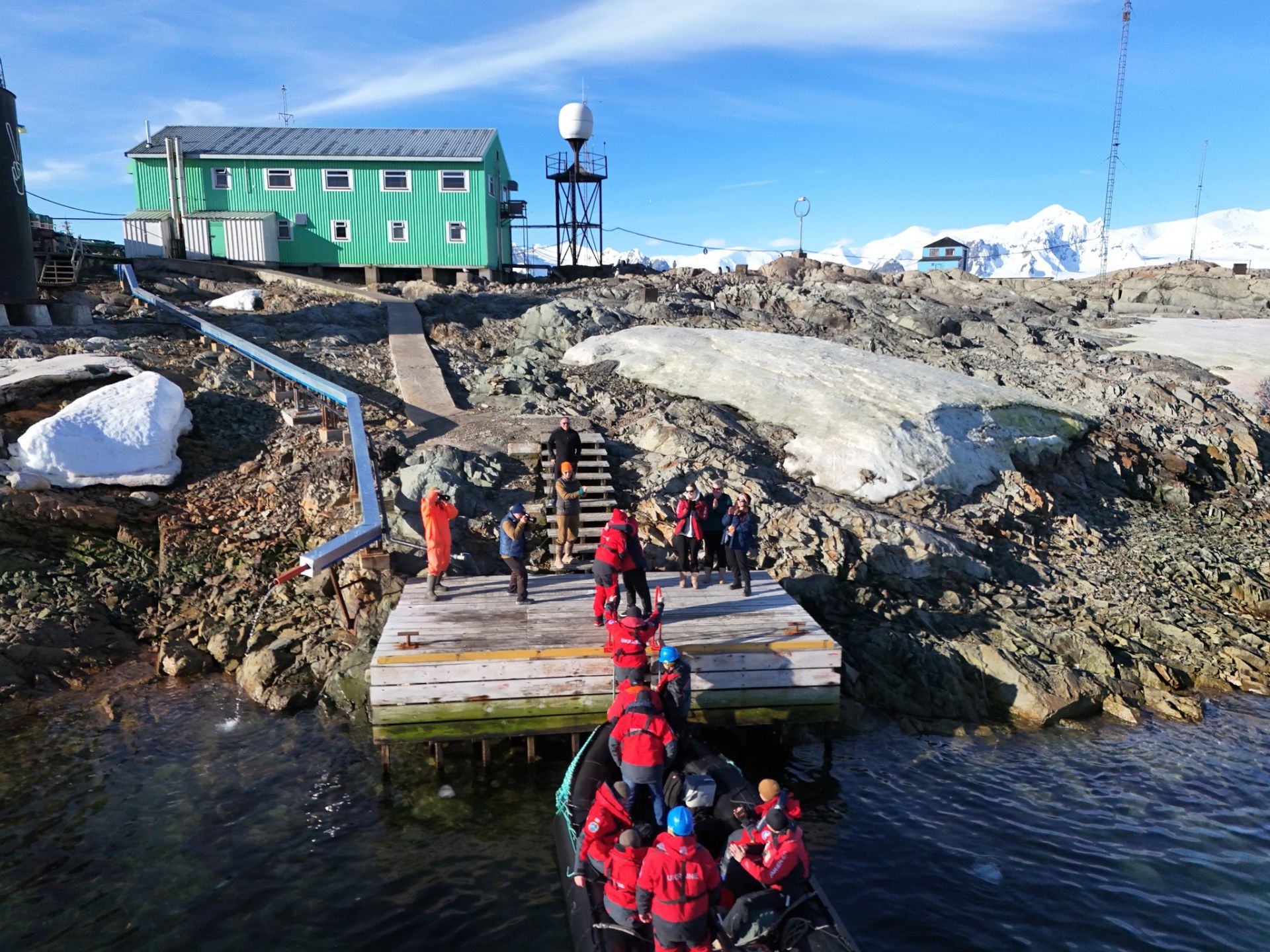 Зараз на станції триває активна перезмінка. Анжеліці та її команді потрібно прийняти справи у колег, які відпрацювали там цілий рік, та розвантажити 50 тонн продуктів, палива й обладнання. Все це доводиться переправляти на берег малими човнами, оскільки криголам через мілину не може підійти впритул до причалу.