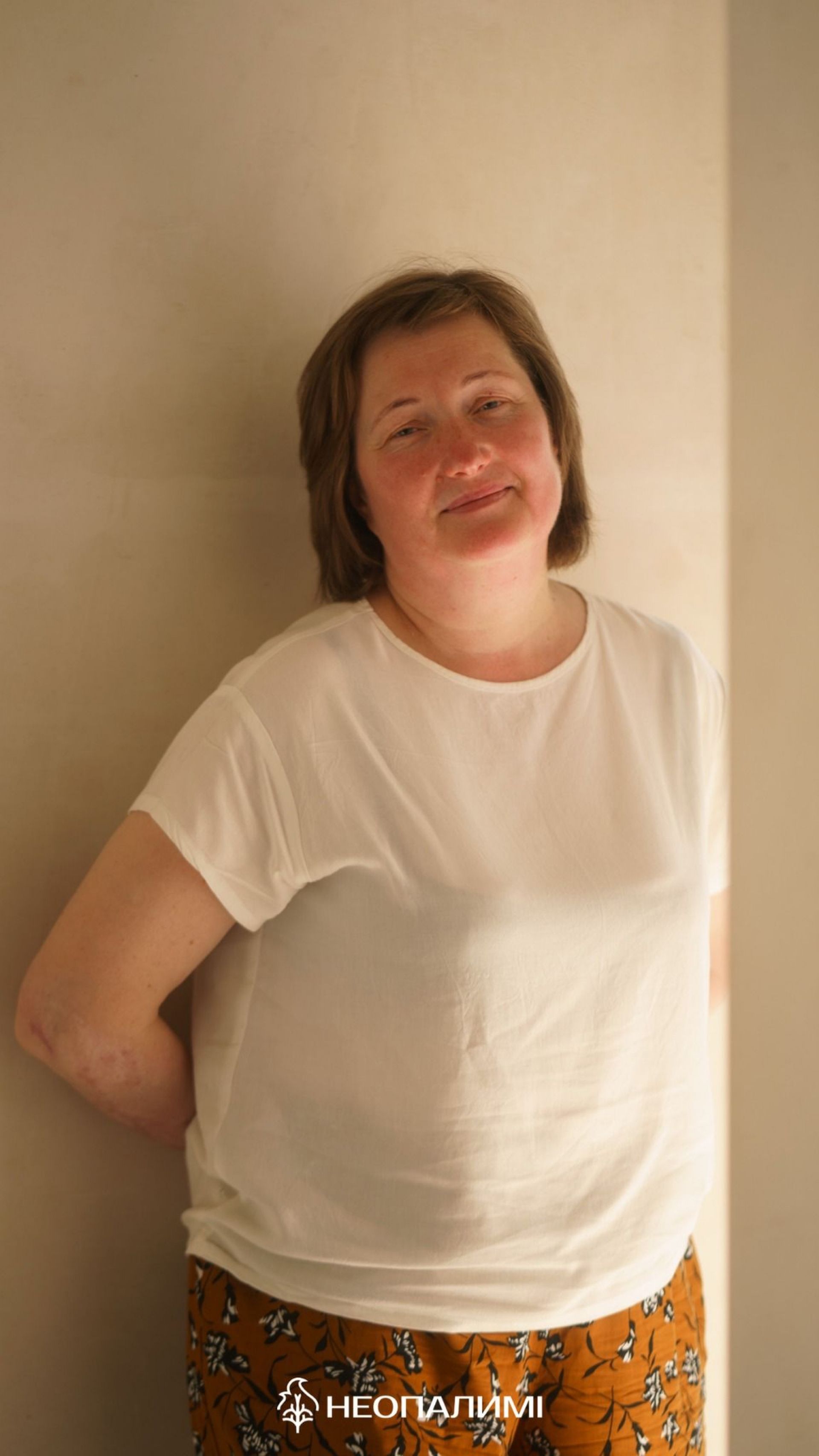 — Я просто вихователька. В мене немає такого, щоб я була розсіяна. Тако, встала з того дивана і пішла. Через вогонь, через скло. Оговталася в 30-ти метрах від клініки, коли на обпечені ступні неможливо було підвестися.