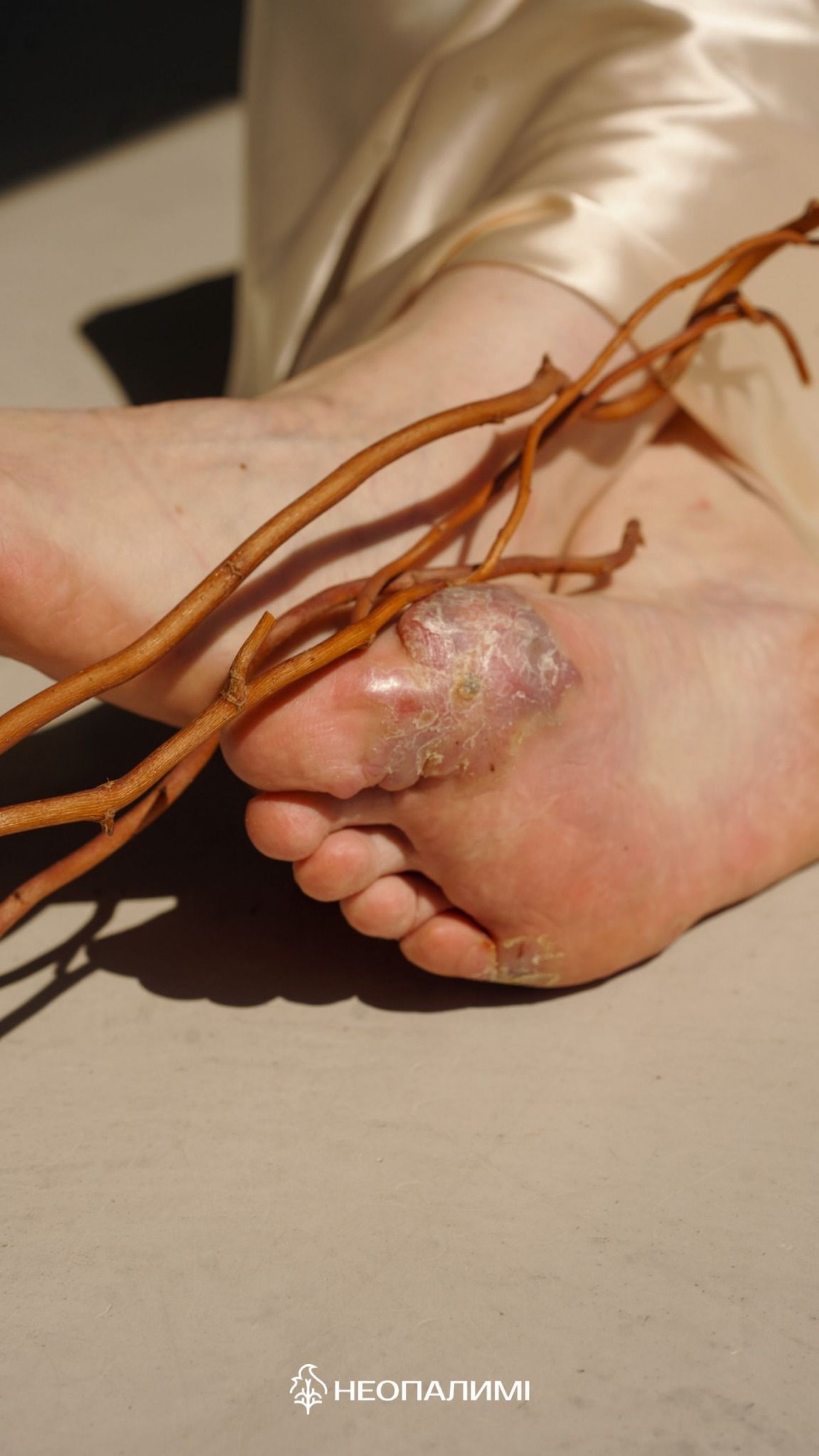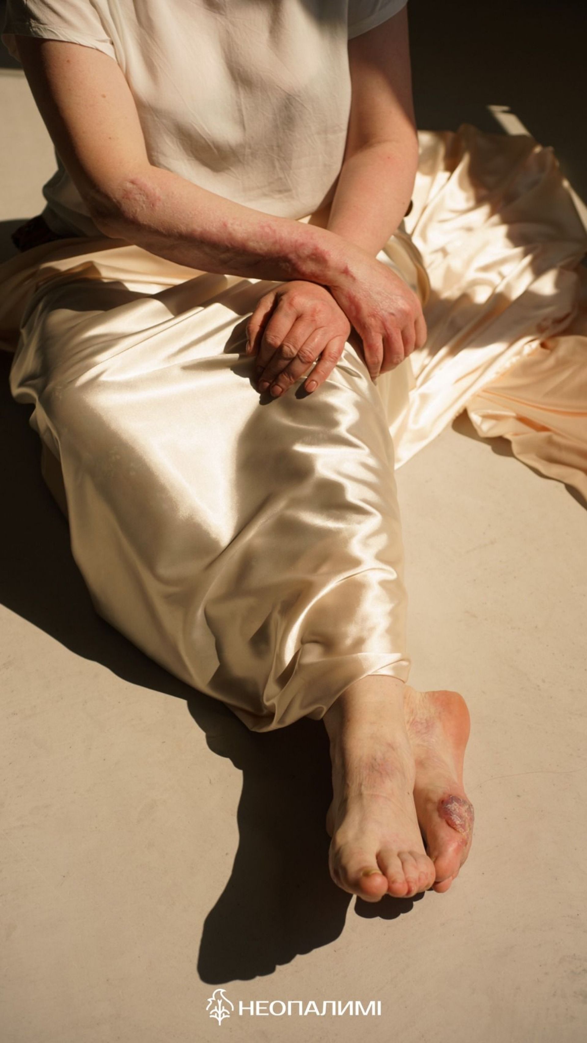 Поки Ірина рятувала своє життя, взуття на ній повністю згоріло, а підошви пристали до ступень.