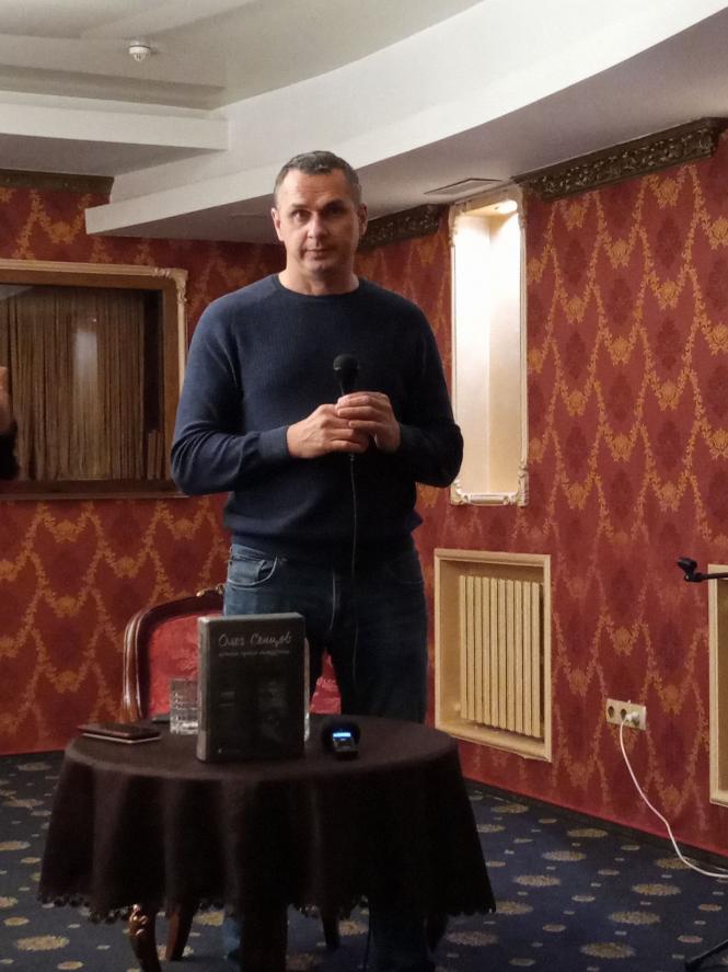 Питання про Україну й українців, війну, Революцію Гідності й окупацію Криму все ж були на цій читацькій зустрічі основними. Говорив Олег Сенцов про свою громадянську позицію і у контексті книг, і у контексті фільмів, і у контексті політики. Точніше, все це було однозначною відповіддю — режисер щоразу продовжує обирати Україну й боротись за неї.