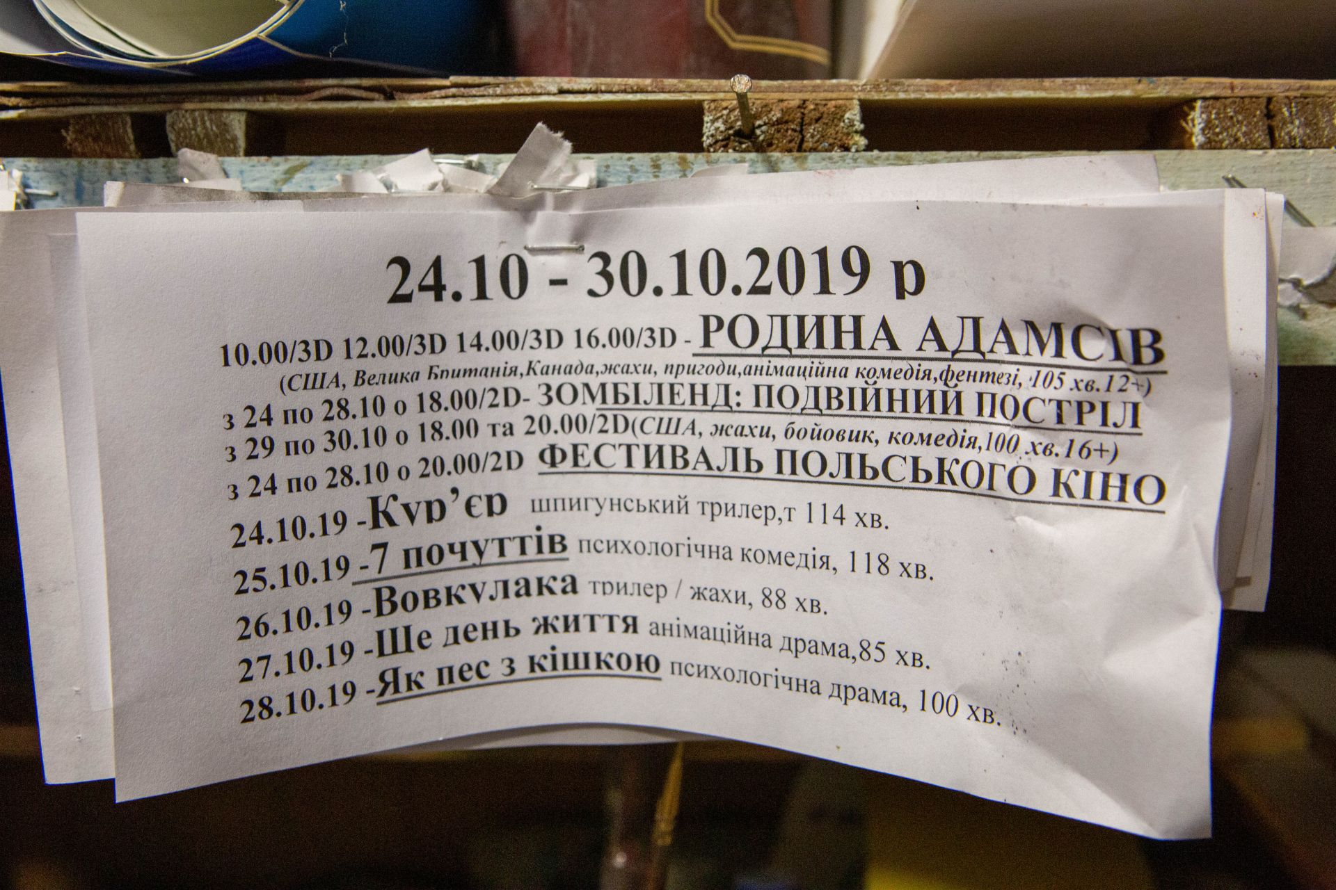 Після ремонту кінотеатру «Родина» у ньому з’явились афіші фільмів надруковані в поліграфії. Намальовані від руки афіші прибрали з фасаду і перенесли під арку біля входу.