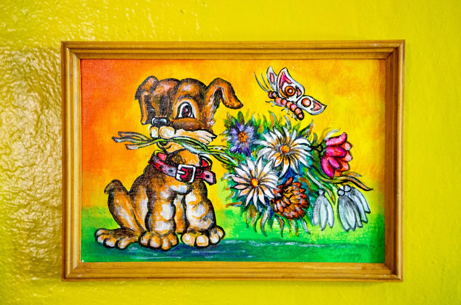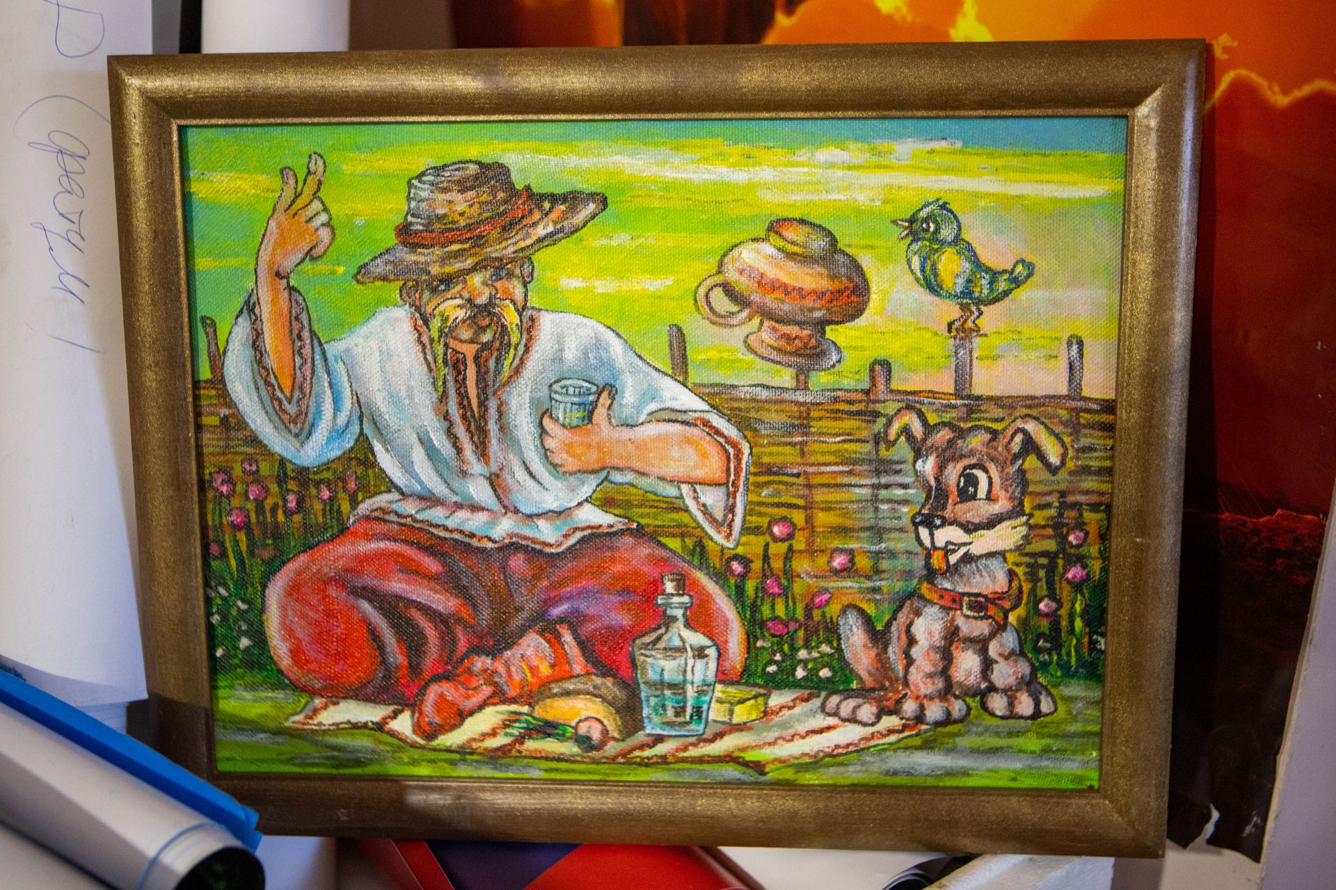При вході, на стіні майстерні Василя Миколайовича висить картина, намальована дитячою рукою.