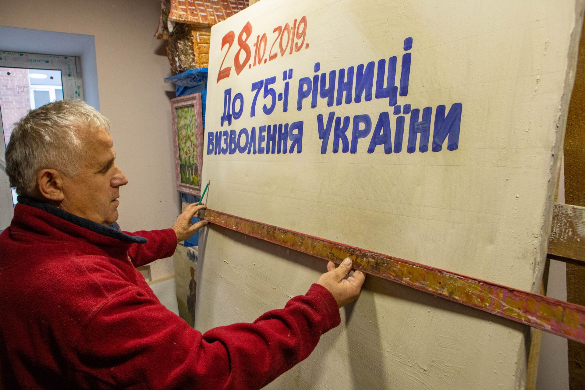 — Колись працював я у Стрию (місто обласного значення у Львівській області, — авт.), у будинку офіцерів, — розповідає художник. — Я вже добре писав шрифти і один художник з села попросив допомогти йому. Потрібно було терміново написати: «Ленін жив, Ленін живе, Ленін буде жити!». Два варіанти: українською та російською мовами. Я допоміг йому написати російський варіант. Він ввечері, вже без мене, зробив варіант українською. Згорнув його і віддав замовнику. Вранці великий плакат розгорнули на площі, а там написано «Ленін мешкав, Ленін мешкає, Ленін буде мешкати!». На західній Україні не кажуть: «де ти живеш», а «де ти мешкаєш». Його потім довго тягали, думали, що спеціально.
