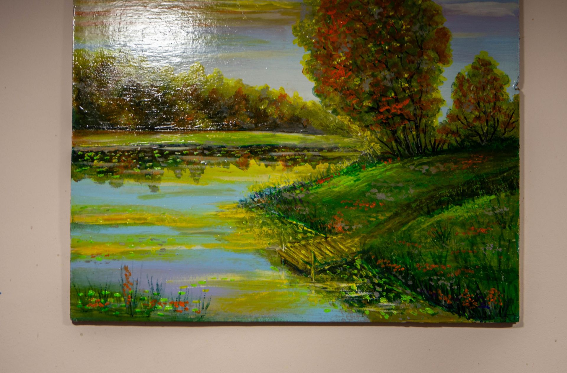 — Це внучка намалювала, — каже майстер. — Залишив полотно, а вона схопила фарби і ось таке намалювала за кілька хвилин. Зараз вона у другому класі. Хоча, кажуть, що всі діти талановиті.