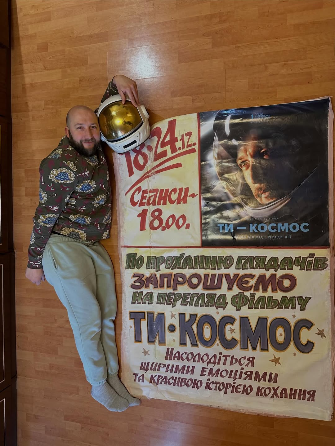 Світлини з афішами, намальованими його рукою, нещодавно викладали блогер Антон Птушкін, який зняв документальний фільм «Антарктида», та Володимир Кравчук — виконавець головної ролі у стрічці «Ти — космос».
