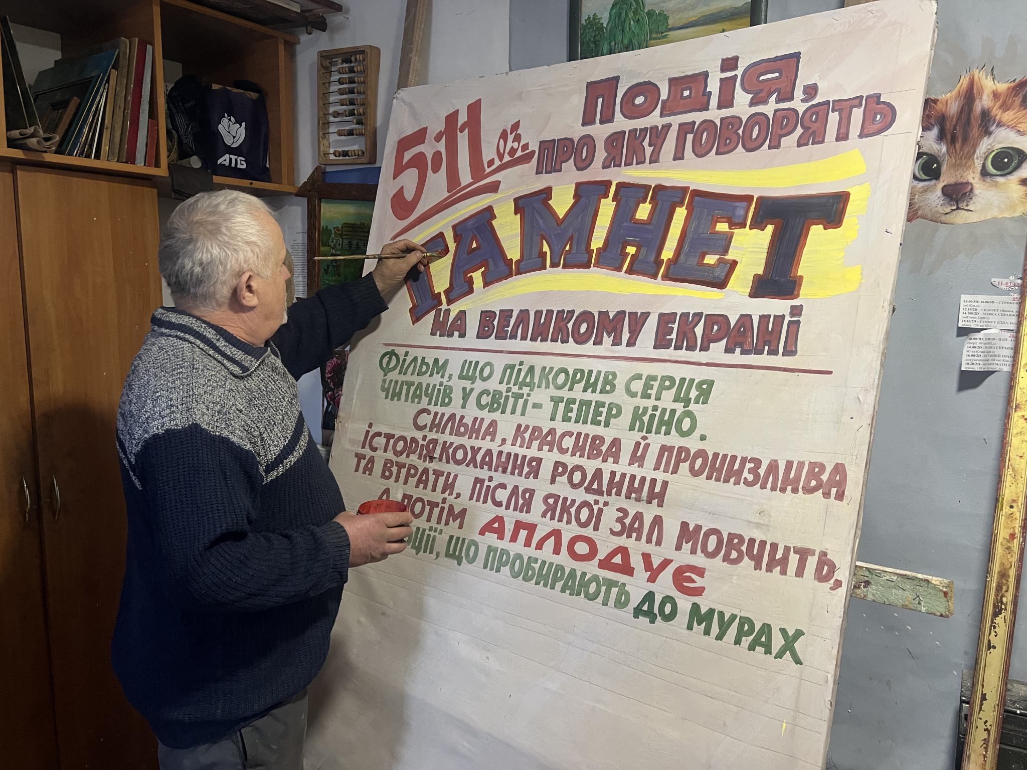 — Колись кожен поважаючий себе кінотеатр мав художника, який малював їм рекламу від руки. У кінотеатрі імені Коцюбинського, памʼятаю, був Толя, в іншому — Володя. А потім до нас дійшли друковані постери, і стало зрозуміло, що ми більше не потрібні, — говорить він без образи. — Світ став швидшим і дешевшим, а «живий» шрифт — непотрібною розкішшю. Наклеїти простіше, ніж намалювати. Я це приймаю.