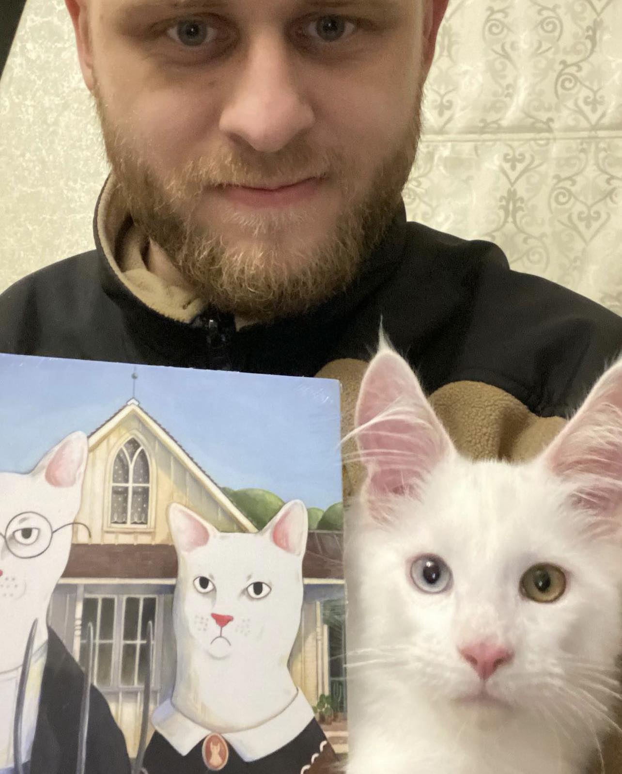 «Я все життя мріяв про великого білого кота». Офіцер Підлісний розповідає про улюбленця мейн-куна