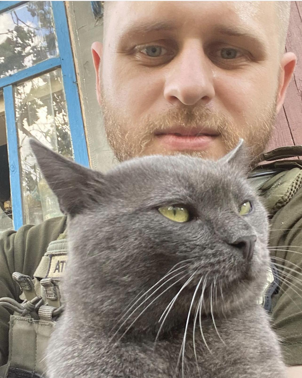 Підлісний каже, що чотирилапі супроводжують його усюди, куди б його не заносили дороги війни. Здебільшого, це врятовані коти.