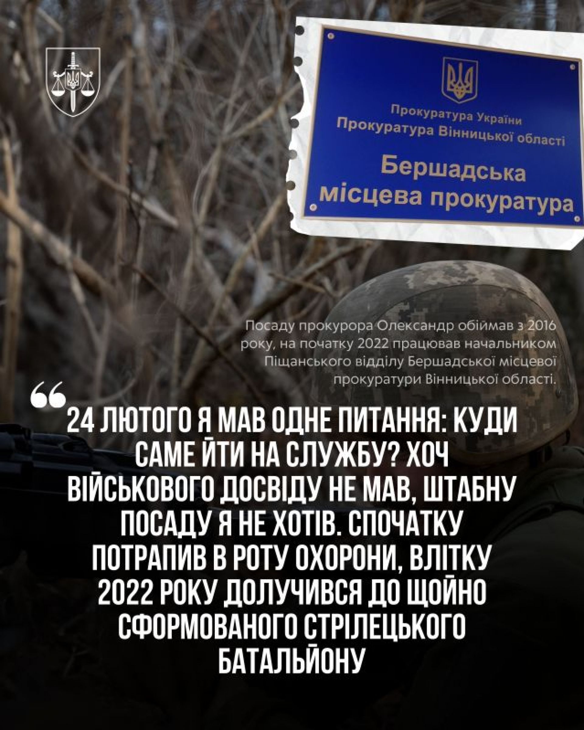 - Покинувши кабінет начальника відділу, чоловік пішов туди, де замість юридичних кодексів говорять автомати, проте навіть там його досвід став для побратимів рятівним колом.