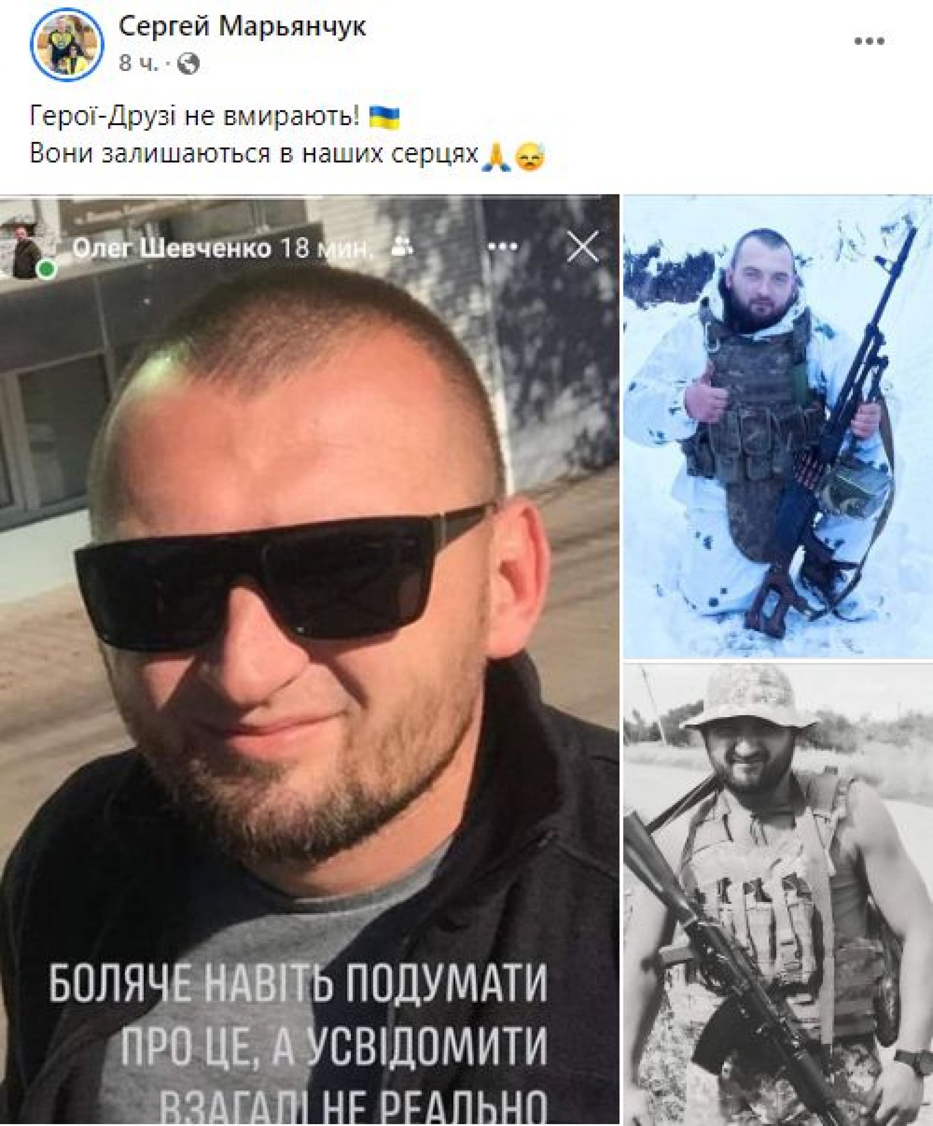 Автор допису Сергій Марьянчук написав: «Герої-Друзі не вмирають! Вони залишаються в наших серцях».
