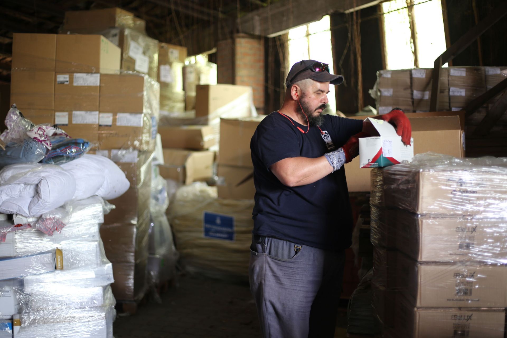 — Сьогодні відправимо багато «красівого», — говорить нам Олександр, перекладаючи коробки з американськими медичними розхідниками на піддон.
