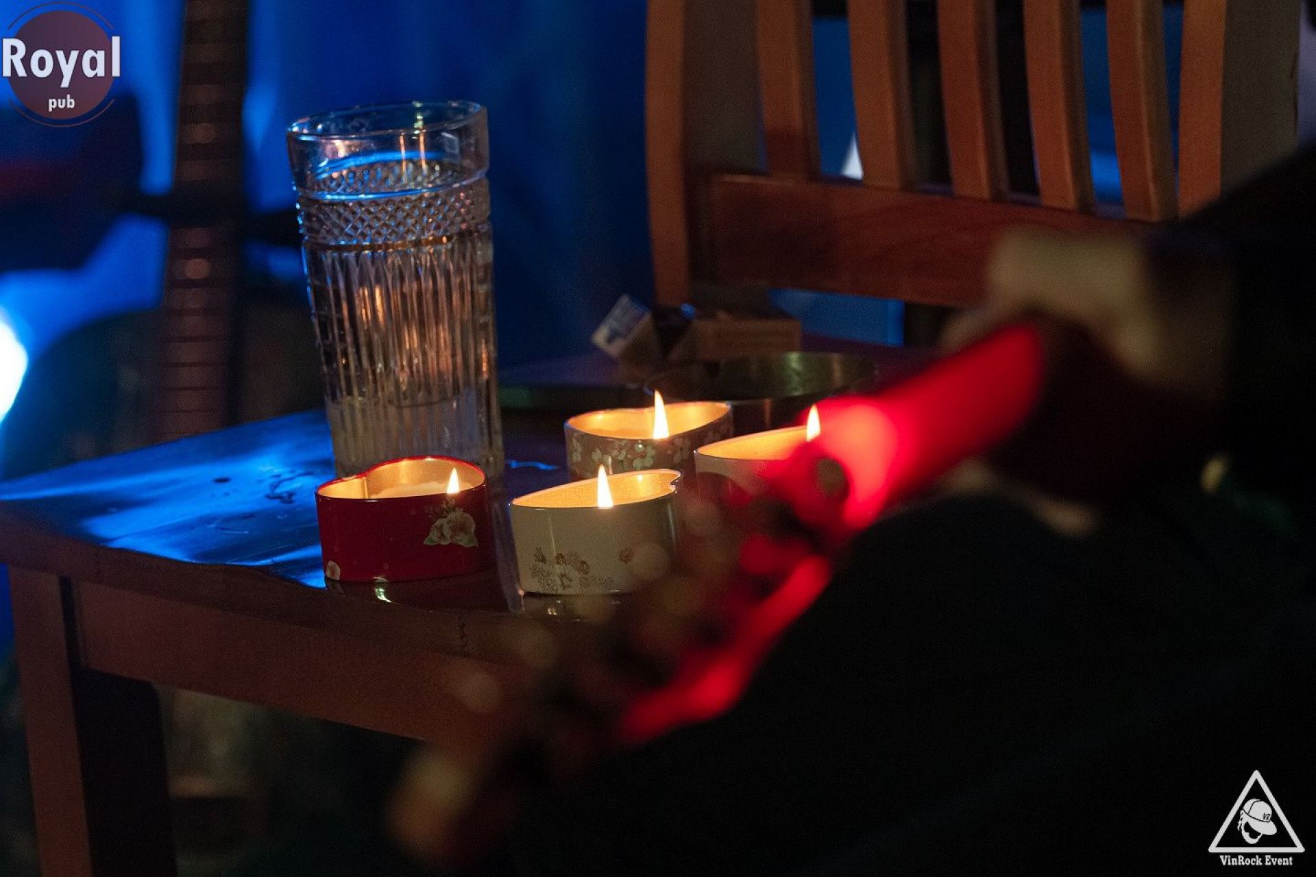 Поруч — символічно запалені на стільчику свічки, Женя Галич бере у руки гітару і занурює всіх у магію акустики.