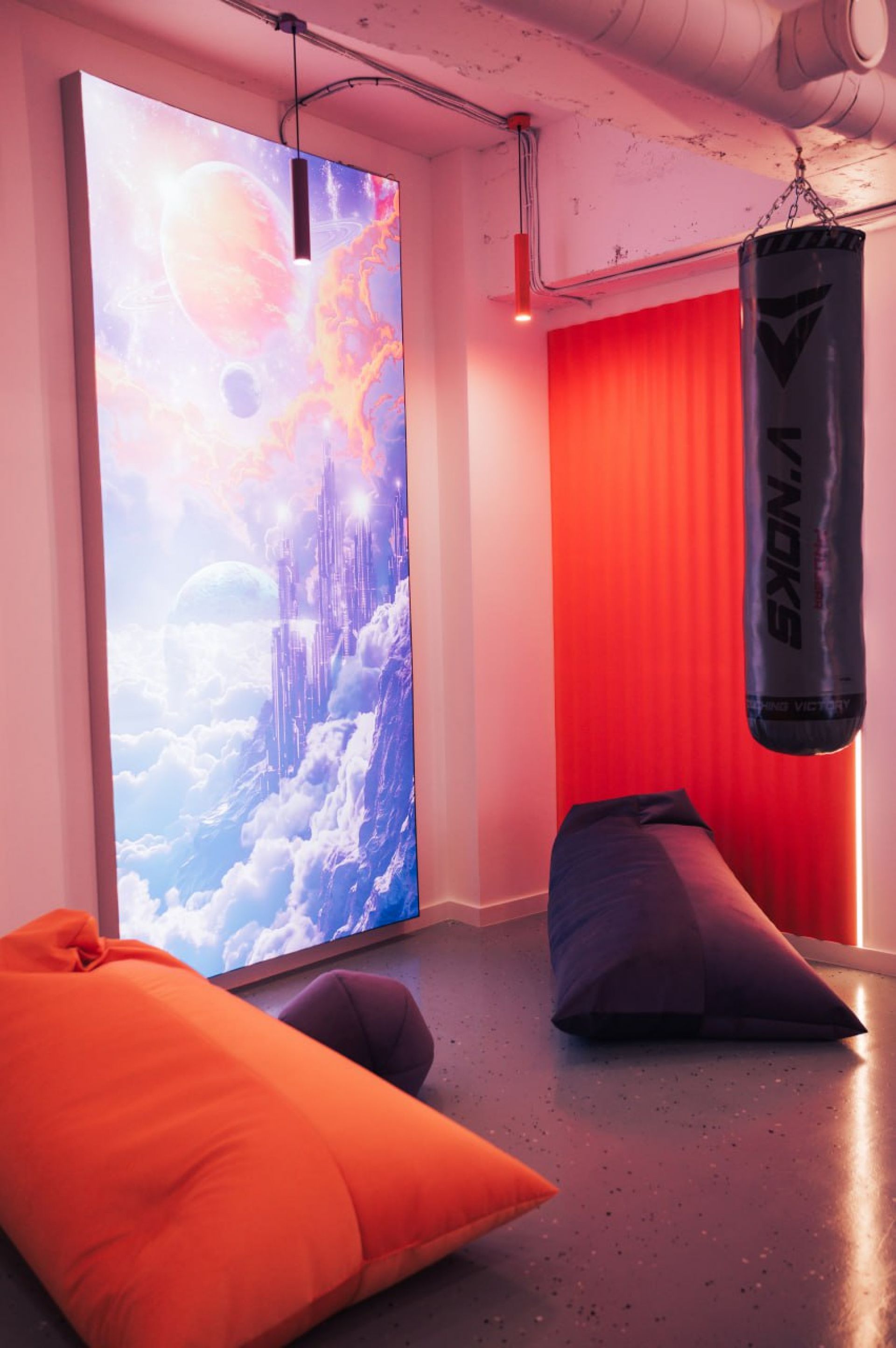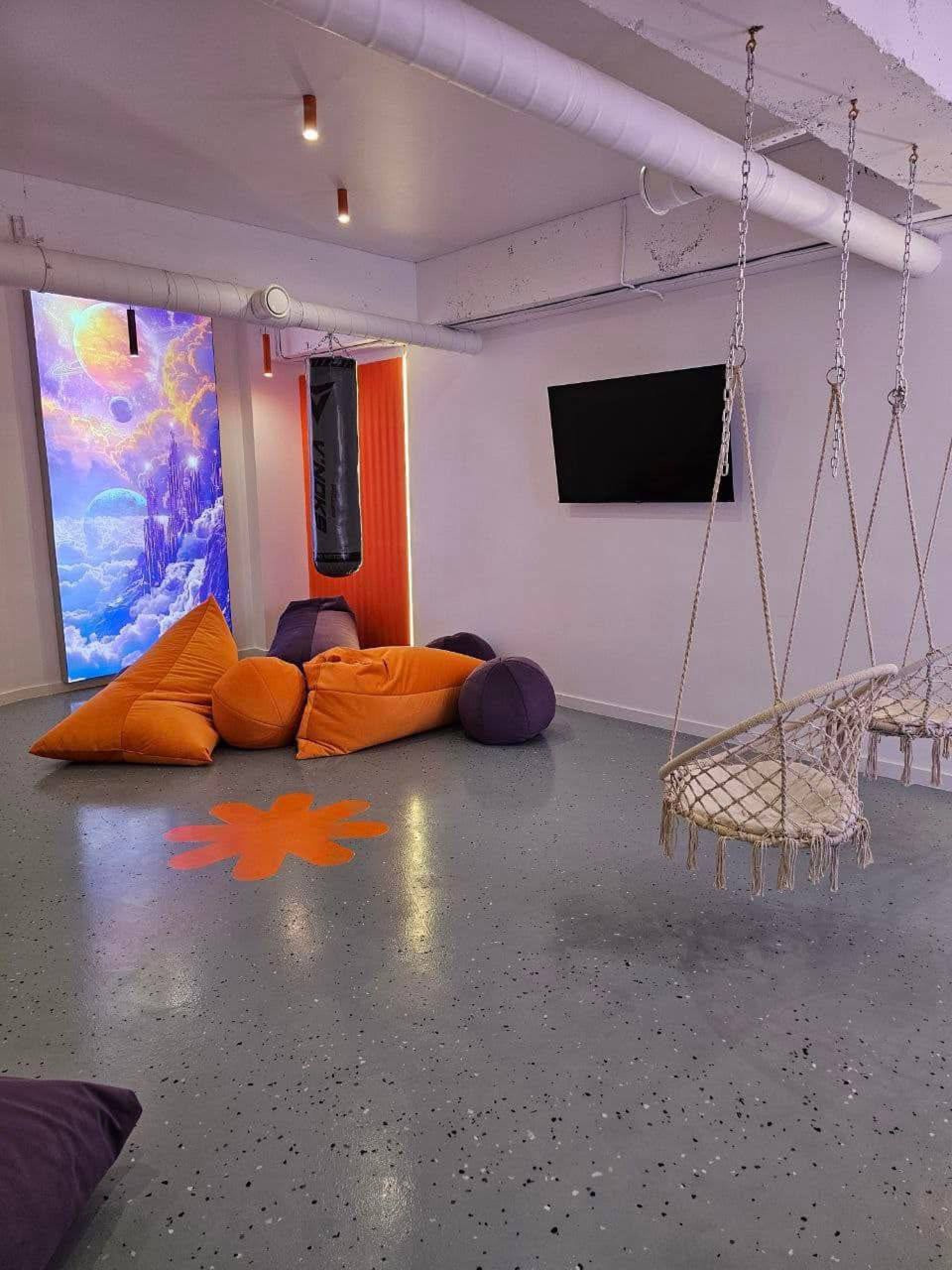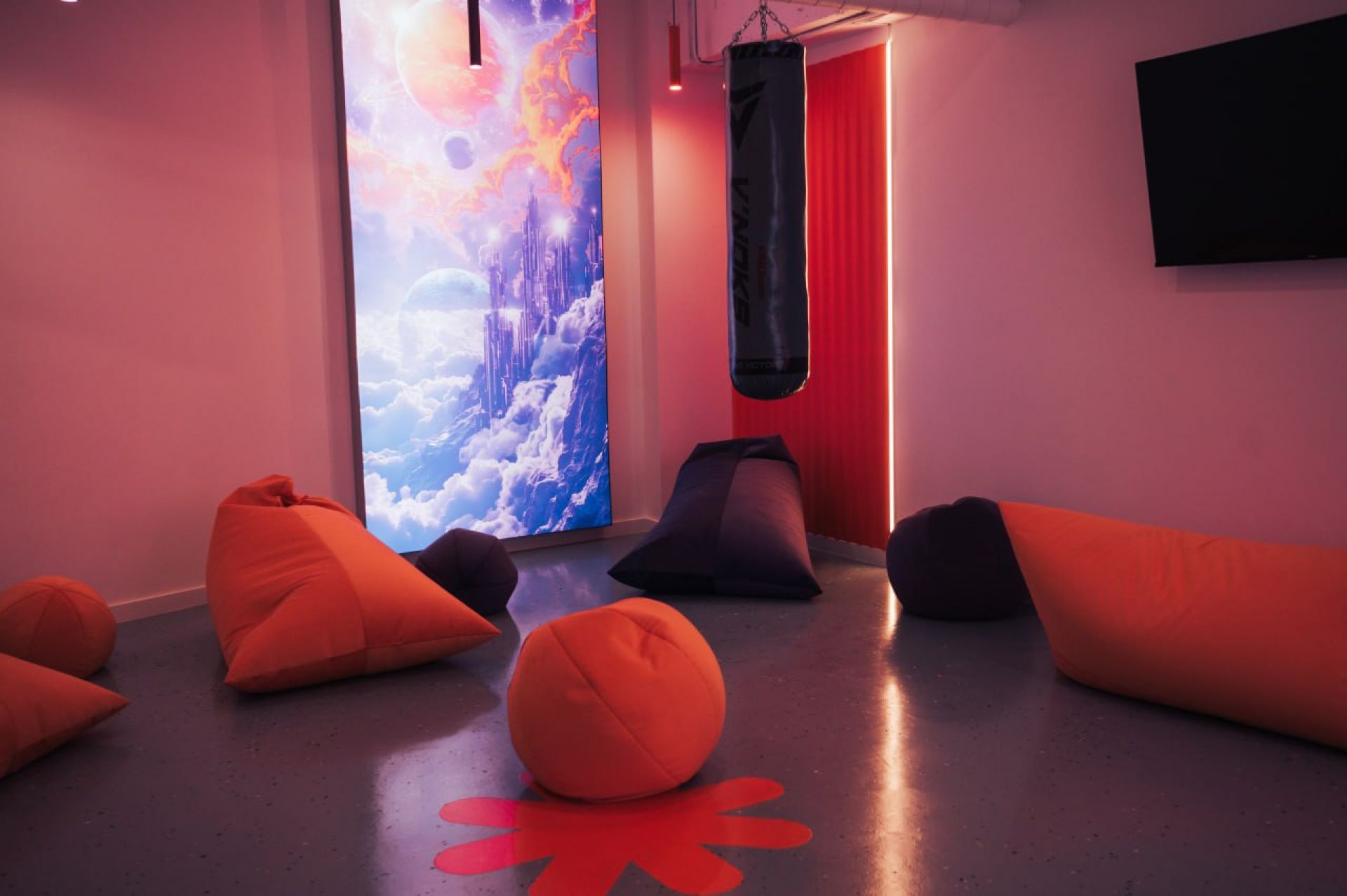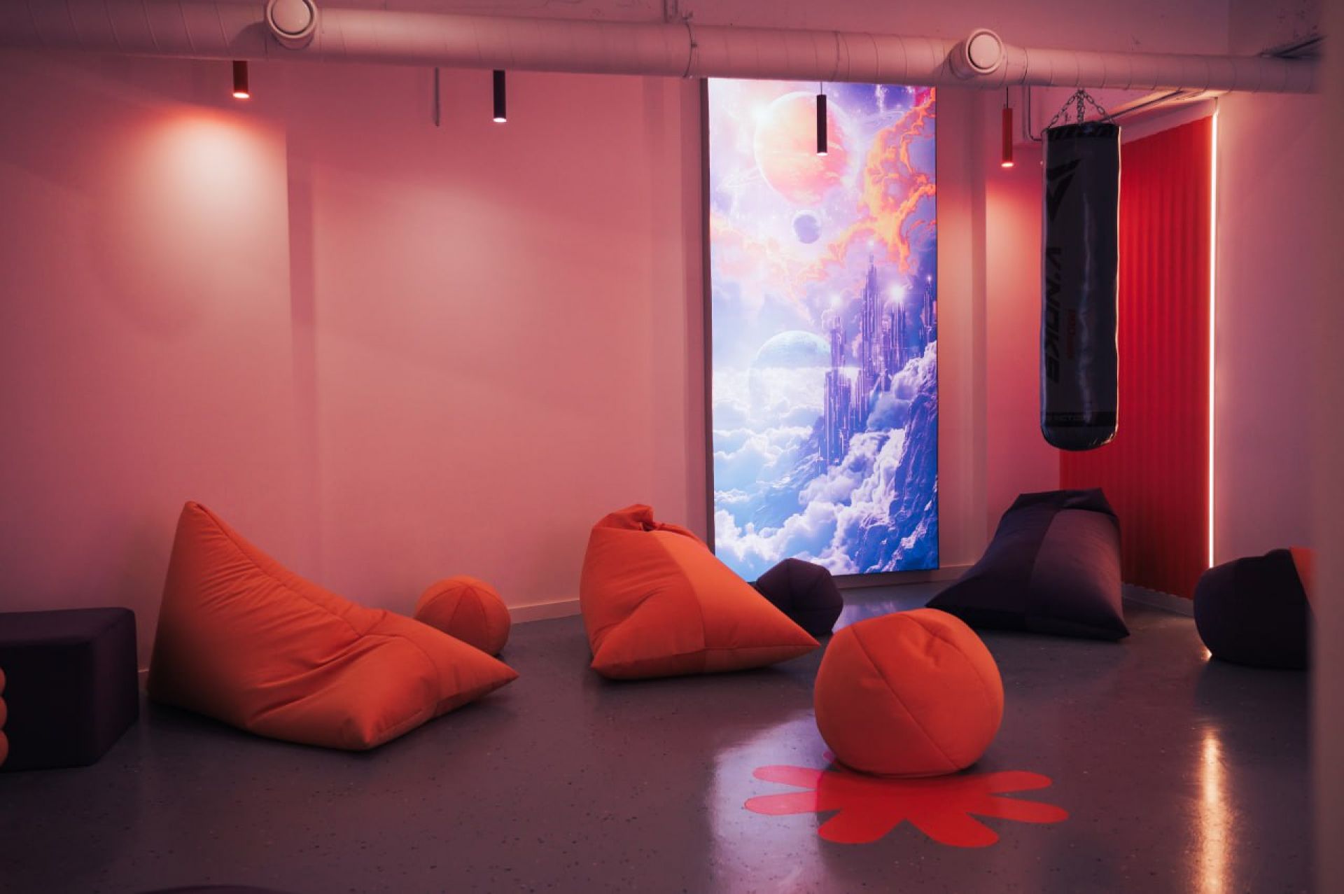 Так, там справжній морський акваріум, і так - з рибками, як у «Немо». Двоярусна кухня мрії, лаунж-зони з камінами та папугами, міні-кінотеатр, PlayStation, теніс, зелень, тиша і драйв — усе, щоб не просто працювати, а кайфувати.