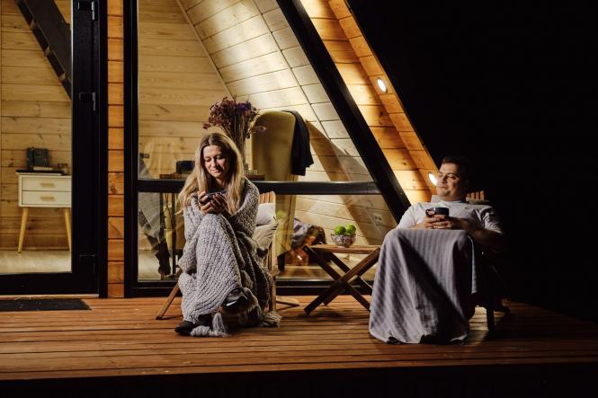Тераси. Неодмінна частина стилю альпійського шале, де основними матеріалами є знову ж таки дерево та камінь. Меблі для терас зазвичай виконані з масиву дерева або ротанга, доповнені м’якими текстильними подушками й пледами для прохолодних вечорів. Особливу атмосферу створюють декоративні елементи: ліхтарі, свічки чи натуральні тканини.