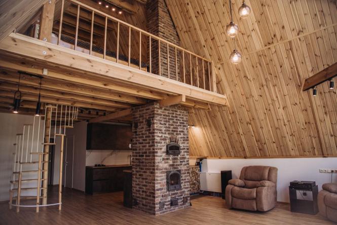 Один із центральних елементів альпійських шале — це камін. Його облицювання виконується з грубого каменю, що підкреслює зв'язок із природою.