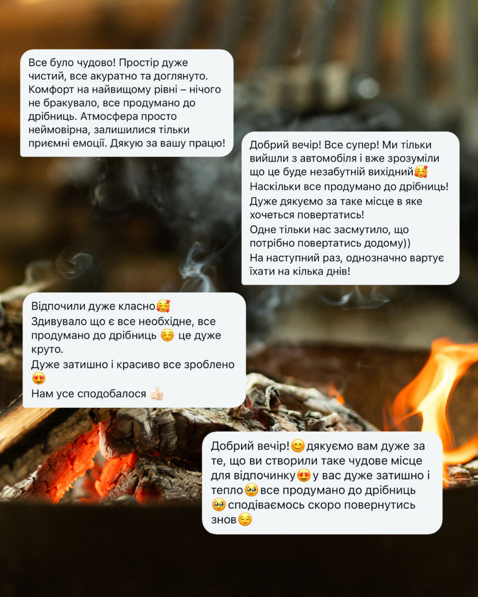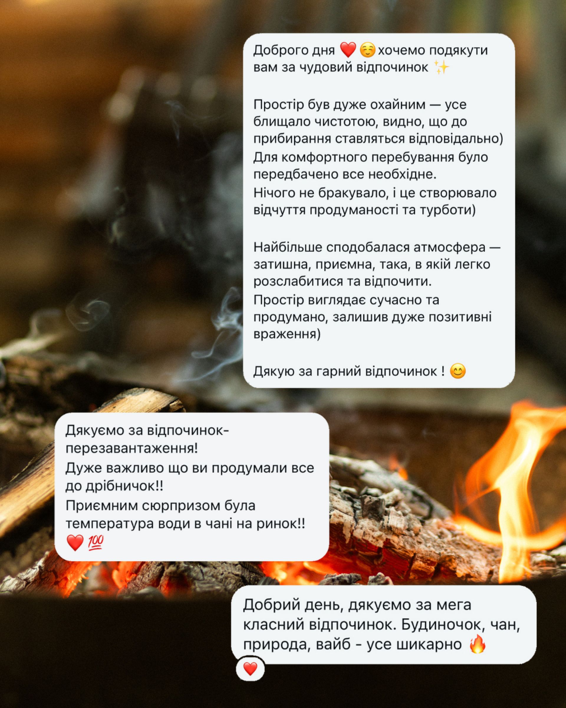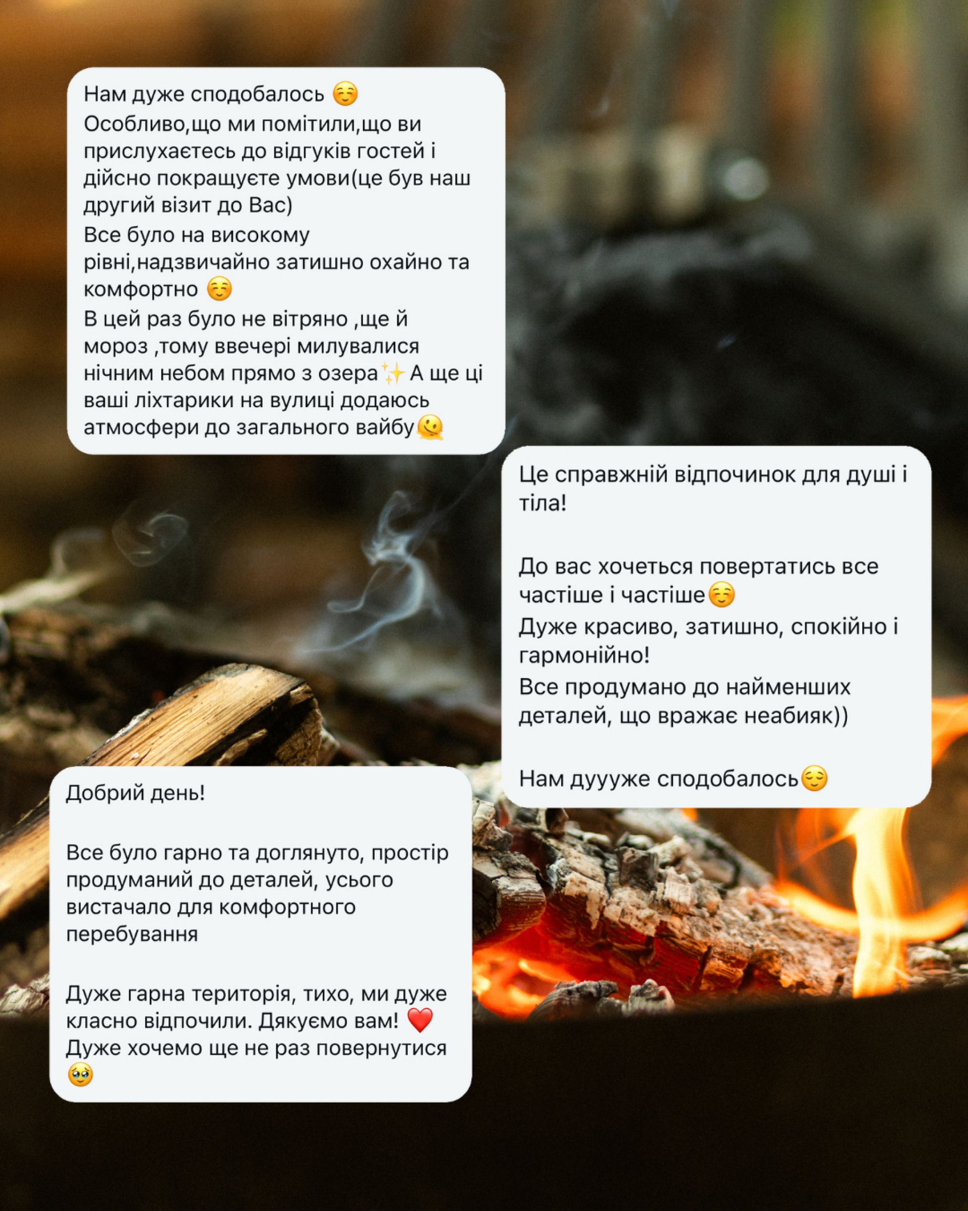 Чи комфортно тут взимку? Можна відповісти коротко — так! Адже в цьому місці затишно в кожну пору року та за будь-якої погоди. Але в особливо холодні, сирі та сірі осені-зими тут можна зловити той самий кіношний вайб. За всім цим стоїть клопітка робота та уважність людей, які підтримують комфорт у будиночках і на території поруч.