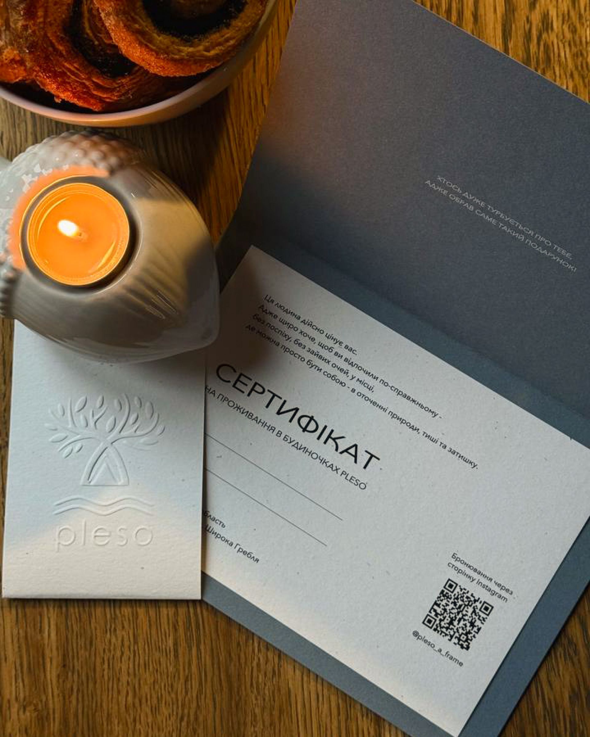 Замовити сертифікат на певну суму можна на сторінці в Інстаграм @pleso_a_frame. До речі, у хайлатс Pleso вільні дати для заселення завжди актуальні. Це особливо зручно, якщо плануєте забронювати свій особливий день.