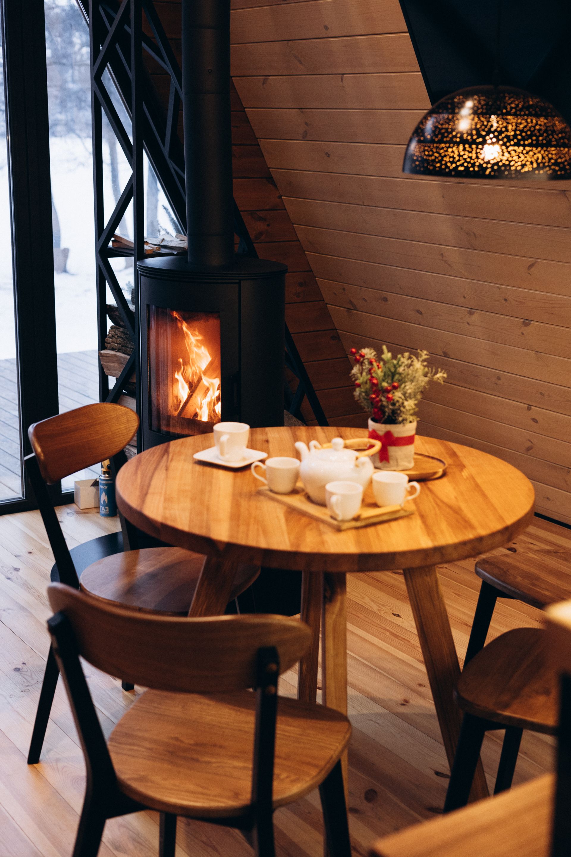 Камін у будиночках — це та річ, яка дарує не лише тепло, але й +500 балів до затишку. Поки дрова тріскотять, а вогонь м’яко палахкотить, у будиночку стає тепло. І ця комфортна температура протримається ще довго, завдяки теплоефективному плануванню. «Тепла» підлога по будиночку цьому додатково сприяє.