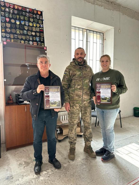 — А ще — щотижня ми завантажуємо машини не лише замовленими воїнами речами й продукцією МХП, а й смаколиками, які впродовж років готують наші чудові друзі — господині з Оляниці, Четвертинівки, Лукашівки та інших сіл, що розташовані поруч з Ладижином. Дівчата для захисників все готують, як для власних синів — аби було найсмачніше: домашні голубці, вареники, котлети, млинці з яблуками, пиріжки, малосольні огірки. Коли Микола Кучер і мій чоловік Віктор все це особисто доставляють воїнам, дістають ці відерця з домашніми смаколиками, привозять їхні улюблені снікерси й газовану воду — хлопці радіють, як діти! Іноді мене деякі волонтери запитують, навіщо ми це возимо, адже можна «Новою поштою» відправити. Так, можна. Але наскільки воїнам приємно, коли до них особисто приїжджають! Жодна посилка чи розмова по телефону не замінить спілкування й зустрічі тет-а-тет. Микола Іванович завжди з хлопцями обов’язково разом снідати сідає, прямо живе цими поїздками й обличчями, історіями й зустрічами з нашими захисниками. І воїни таку щиру підтримку надзвичайно цінують. Самі навзаєм дуже люблять щось дарувати. Дуже часто трофеї передають. Тож після Перемоги плануємо зробити музей, де всі ці речі представимо.