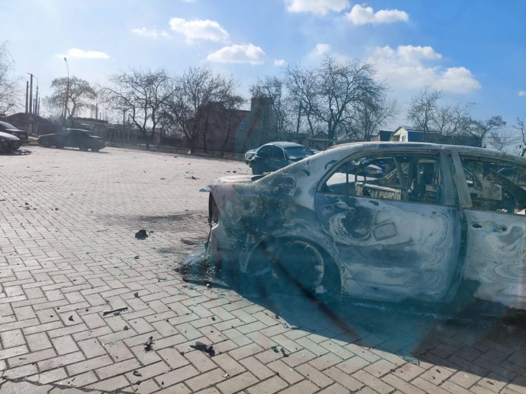 Сліди війни. Обгорілий автомобіль — мовчазний свідок небезпеки, що супроводжувала родину Роми під час втечі. Це нагадування про те, що війна не оминає ні дітей, ні дорослих.