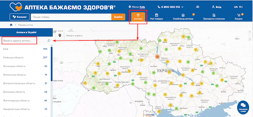 Для цього необхідно натиснути на розділ “Аптеки” та вибрати своє місто. Відкриється карта з доступними адресами аптек. Інтерфейс сайту дозволяє побачити точне розташування обраної аптеки у вашому місті. Щоб дістатися до потрібної адреси, просто натисніть “Прокласти маршрут”, і сервіс “Google Карти” покаже, як найзручніше дістатися з будь-якої точки міста.