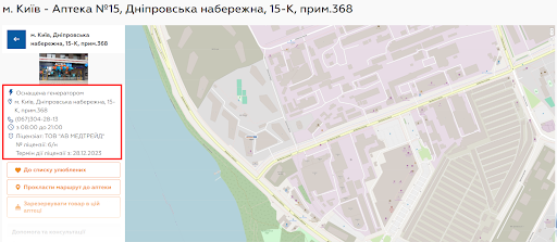 Також на сайті можно легко дізнатись про час роботи потрібної аптеки