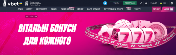 - Vbet - з бонусом до 15 000 грн та додатково 300 фріспінів.