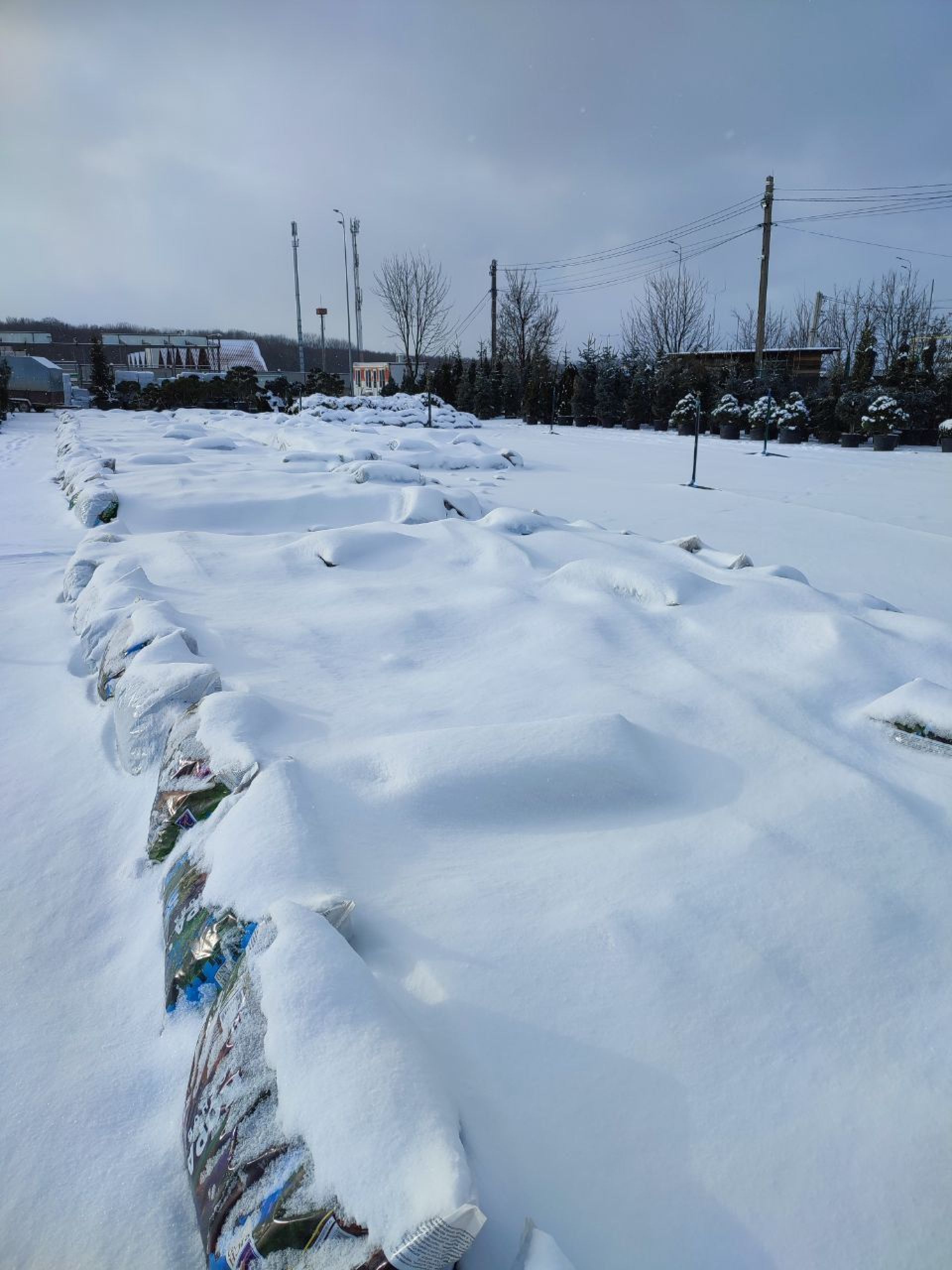На початку зими перед тим,як почнуться морози, потрібно рослини утеплити. А для цього горщики вкладаються горизонтально та накриваються агроволокном. Це треба робити акуратно, щоб не поламати та не пошкодити саджанці.