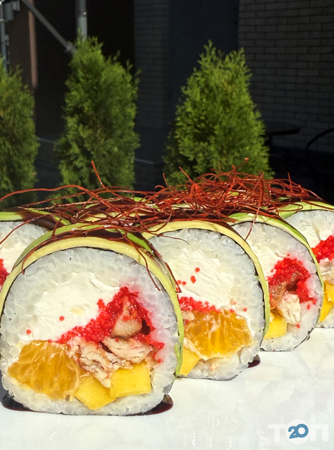 Заклад приділяє належну увагу не тільки ширині, а й якості свого асортименту. Замовляючи тут, можна бути впевненим: суші приїдуть до вас бездоганно скрученими, зі свіжою якісною рибою, а їхня подача приємно вразить своєю естетикою і водночас величиною порцій. Піца ж, своєю чергою, на тонкому тісті і з більш ніж достатньою кількістю начинки буде ще гарячою, хрумкою і пахучою – так і проситиметься до рота.