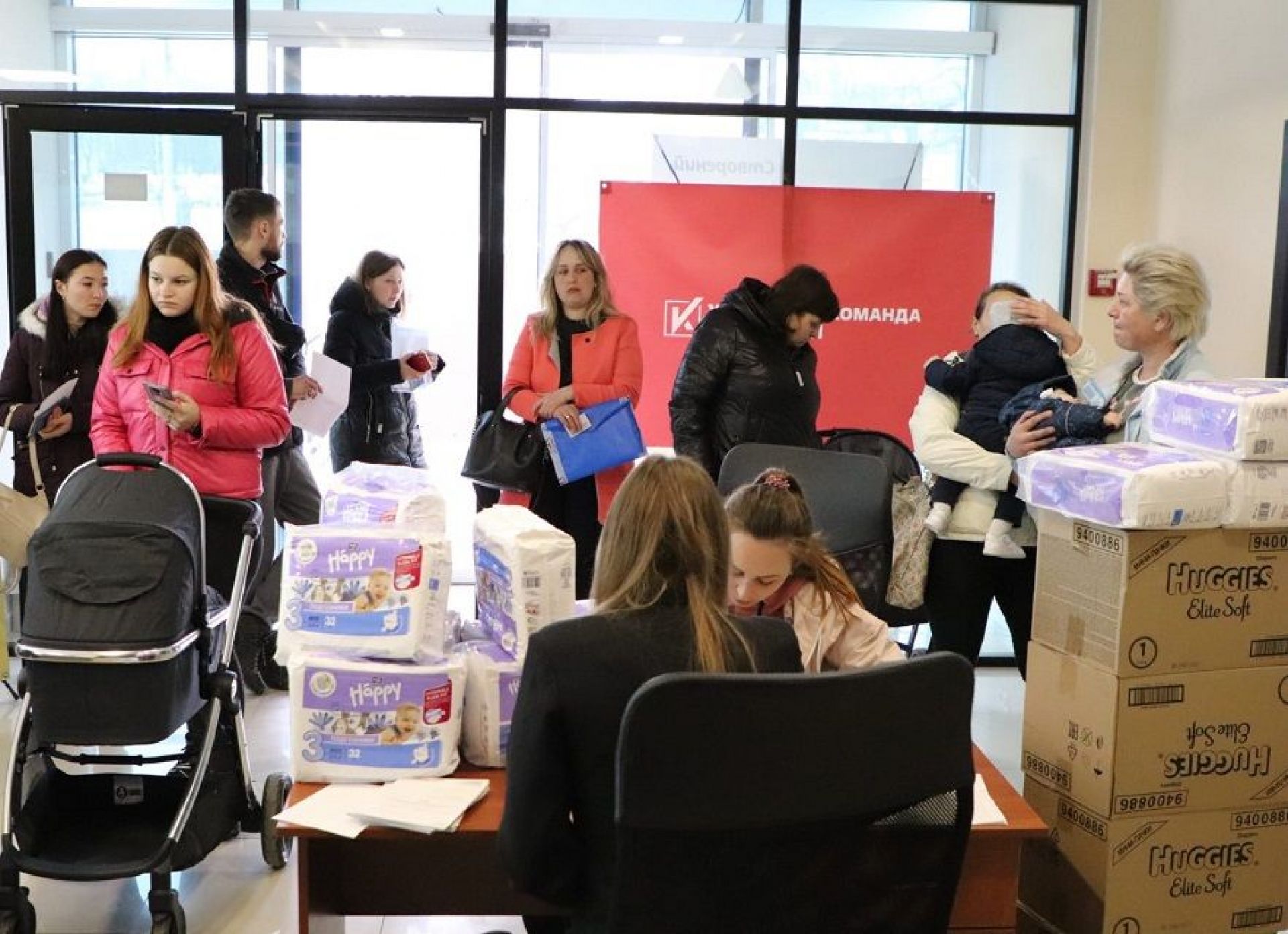 У Вінниці 15 березня волонтерський штаб "Українська команда" Вінниччини спільно з благодійним фондом Людмили Станіславенко проводили видачу гуманітарної допомоги внутрішньо переміщеним, багатодітним та малозабезпеченим сім’ям з дітьми.