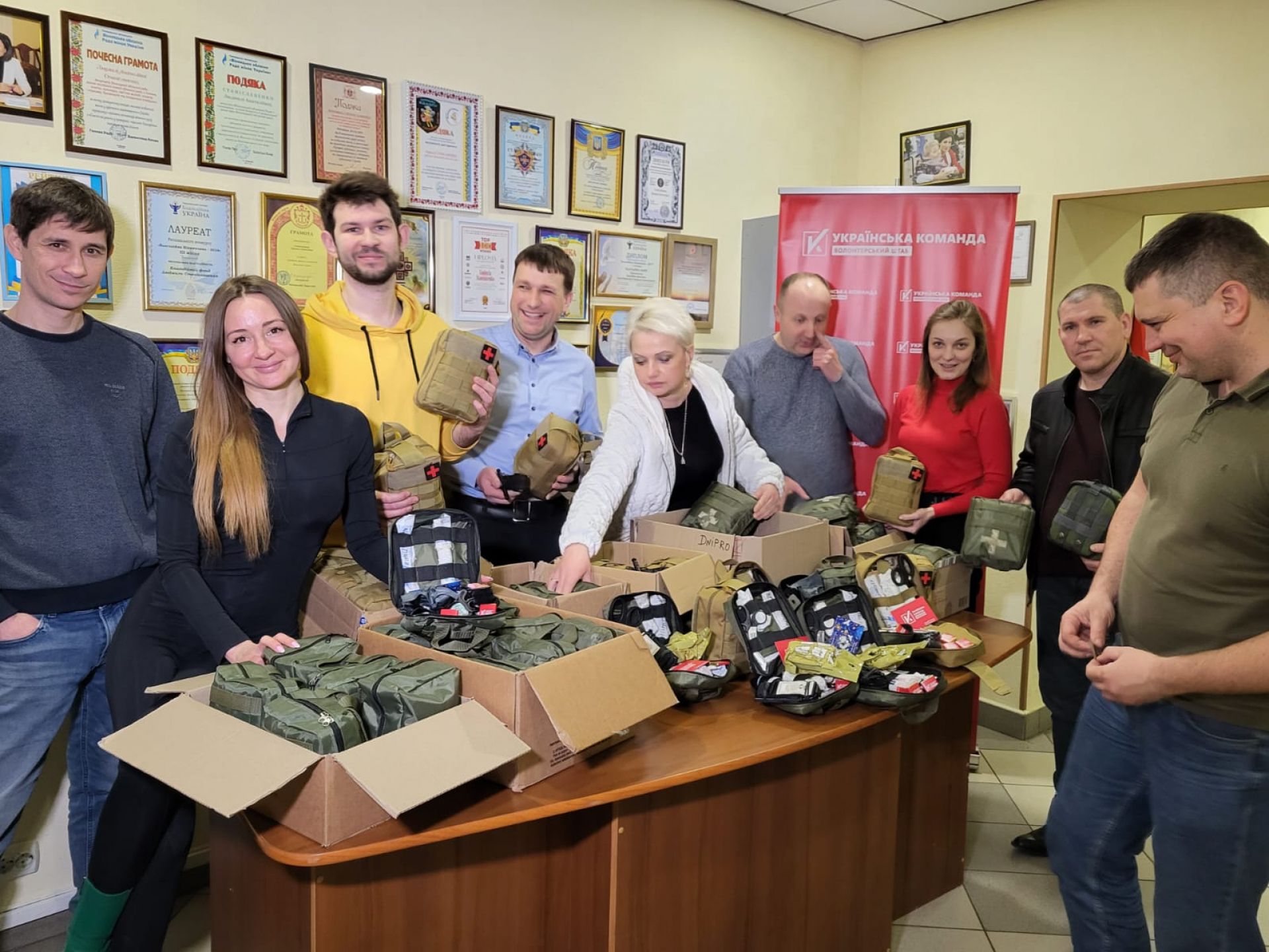 Волонтерський штаб «Українська команда» Вінниччини в черговий раз передав нашим військовим, які відважно боряться з ворогом на передовій, близько 100 військових тактичних аптечок з варіацією видів кріплень і маскувань.