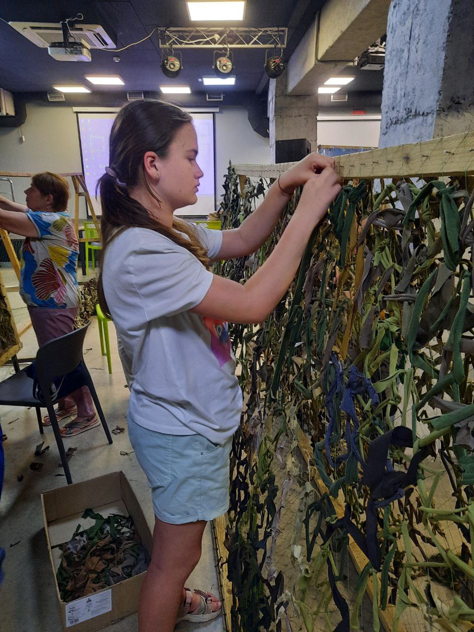 Плетіння маскувальних сіток. Її руки — ще дитячі, але справи дорослі.