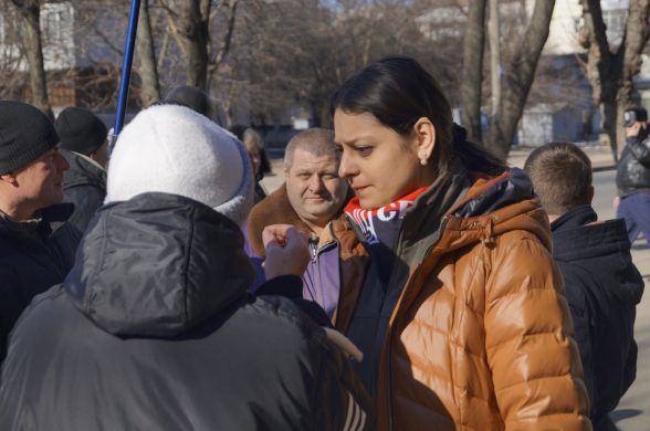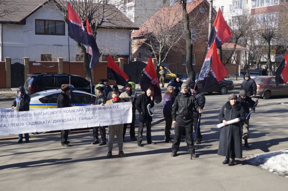 Частину активістів запросили до приміщення військкомату, де до них вийшов заступник військового комісара Олег Кислюк. Він сказав, що все має бути в межах закону. Сьогодні буде розгляд справи в суді і суд вирішить працювати Дерев'янчуку чи ні.