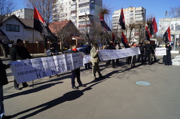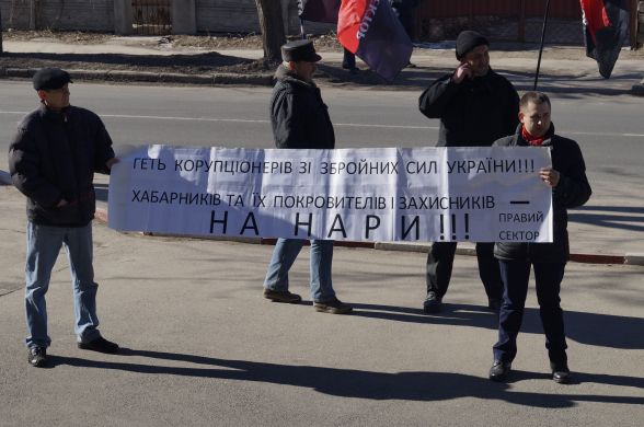 За словами активістів за хабар затримали посередника військового комісара Барсько-Мурованокуриловецького комісаріату Олександра Дерев’янчука. Дерев'янчука відстронили від роботи, але нещодавно поновили. Вони вважають це не справедливим і прийшли до обласного військкомату щоб висловити своє обурення.
