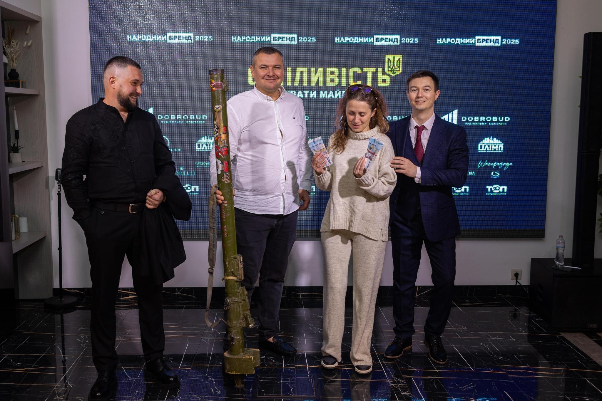 Агенція нерухомості «Олімп» вже 20 років поспіль утримує лідируючі позиції на ринку нерухомості Вінниччини. Особливу повагу викликає те, що директор компанії та ще пʼять колег-співробітників боронять нашу державу в лавах Збройних сил України. Представники багаторічного партнеру «Народного бренду» під час аукціону задонатили 26 тисяч гривень на тубус від снаряду.