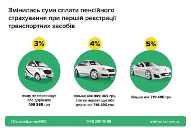 - Під час першої реєстрації автомобіля сплачується збір на обов’язкове державне пенсійне страхування. З нового року цей платіж зріс у ціні.