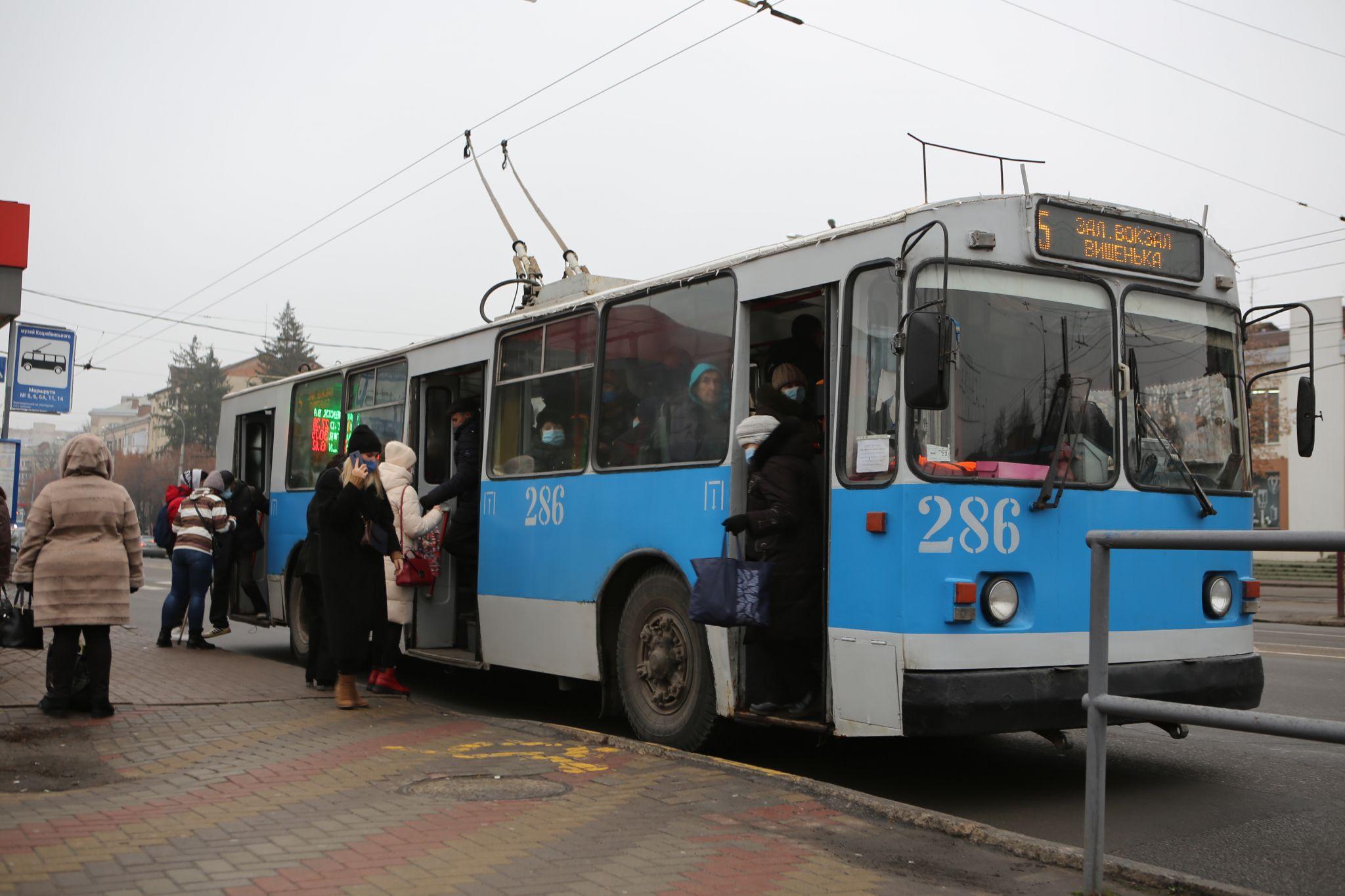 На першій тролейбусній зупинці весь транспорт приїжджав за вказаними на табло часом. Причому це були не лише тролейбуси, але й автобуси та маршрутки.
